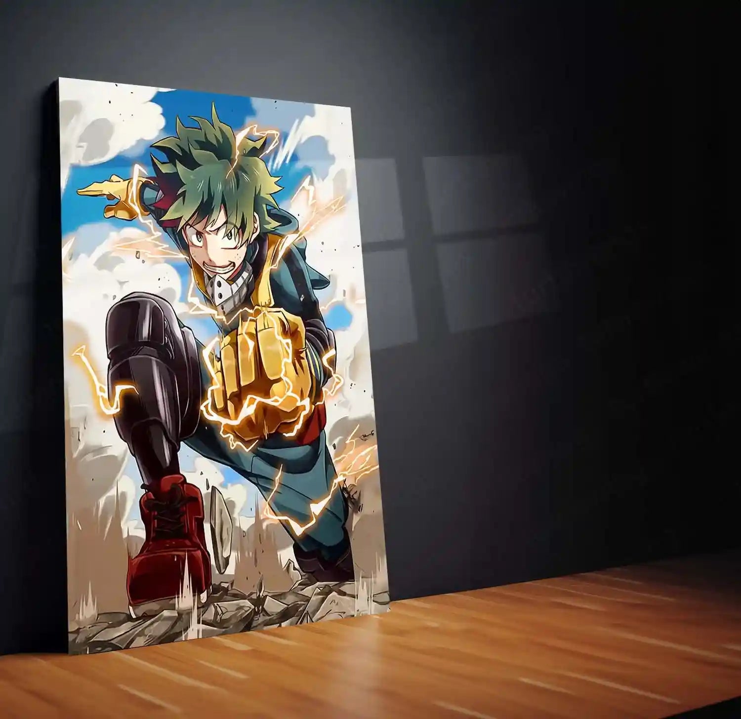 my hero academia metal frame, deku metal poster, mha wall art india, anime metal prints, turtlewings anime frame, izuku midoriya poster, mha decor, hd metal anime artwork, gaming room anime decor, premium anime metal frame