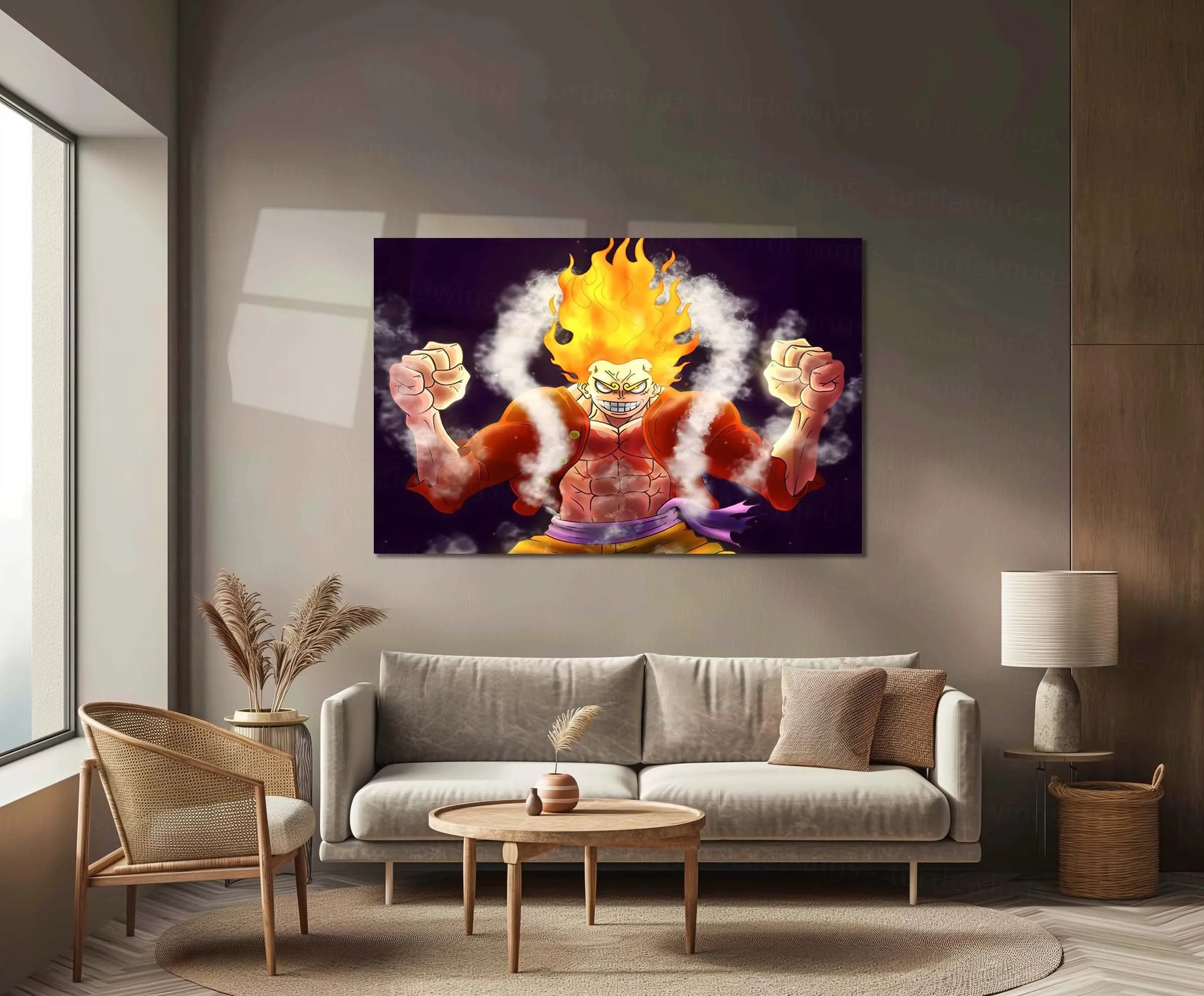 TurtleWings anime poster, one piece wall frame, luffy art print, metal anime decor india