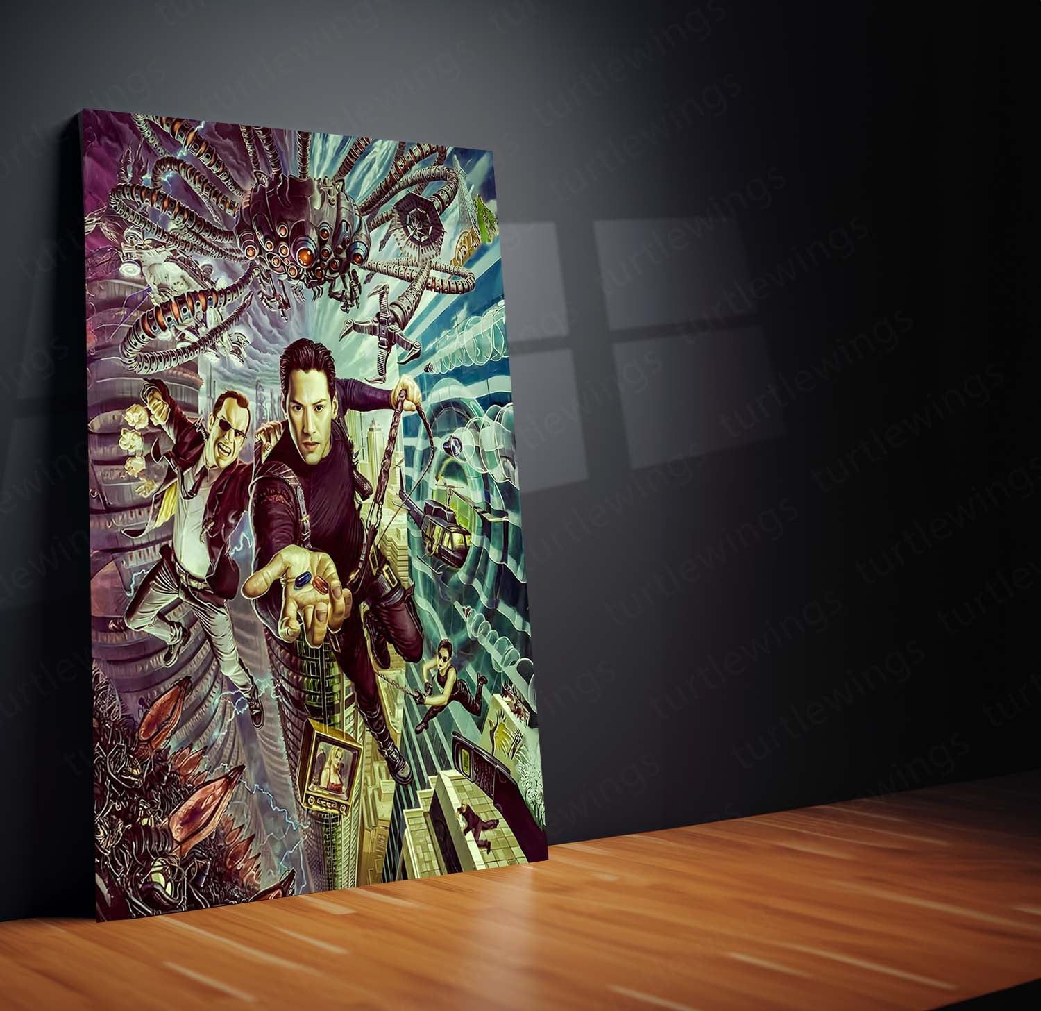 matrix poster, neo wall art, sci-fi movie decor, cyberpunk metal print, the matrix artwork, futuristic digital world poster, turtlewings movie frame, hacker aesthetic wall art