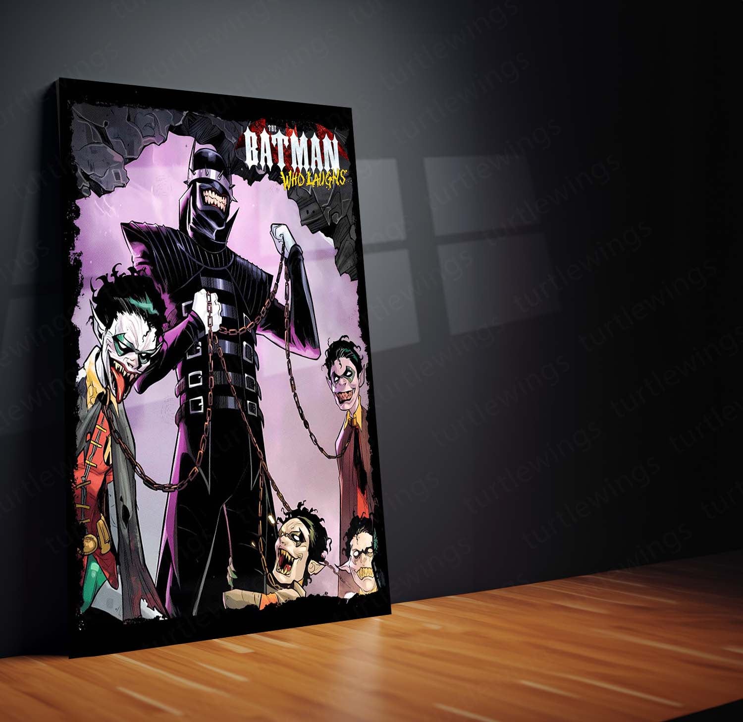 Batman Who Laughs metal poster, DC Comics dark multiverse art, Joker Batman wall frame, evil Batman décor, DC villain poster, Batman Who Laughs artwork, Joker-inspired Batman print