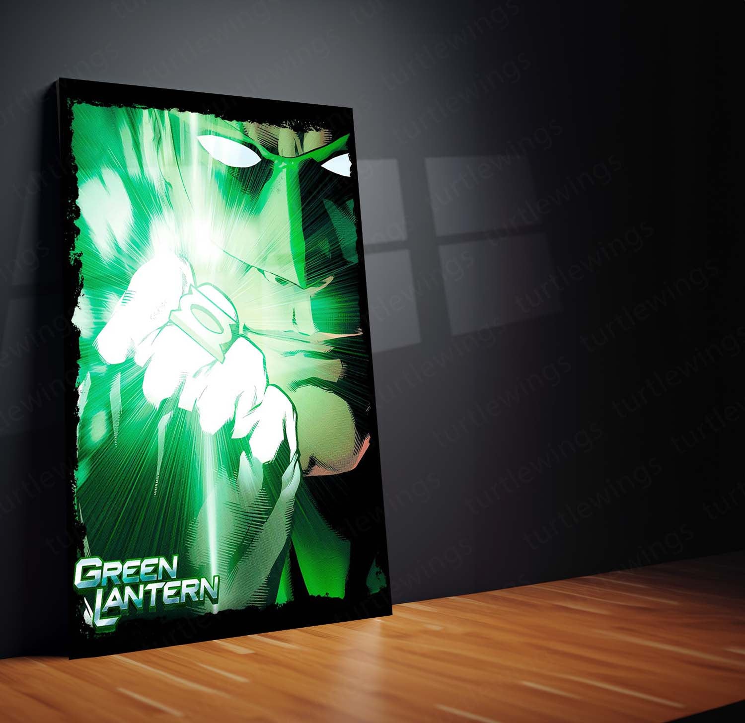 Illuminate your walls with the cosmic power of willpower through this Green Lantern Metal Frame Poster.