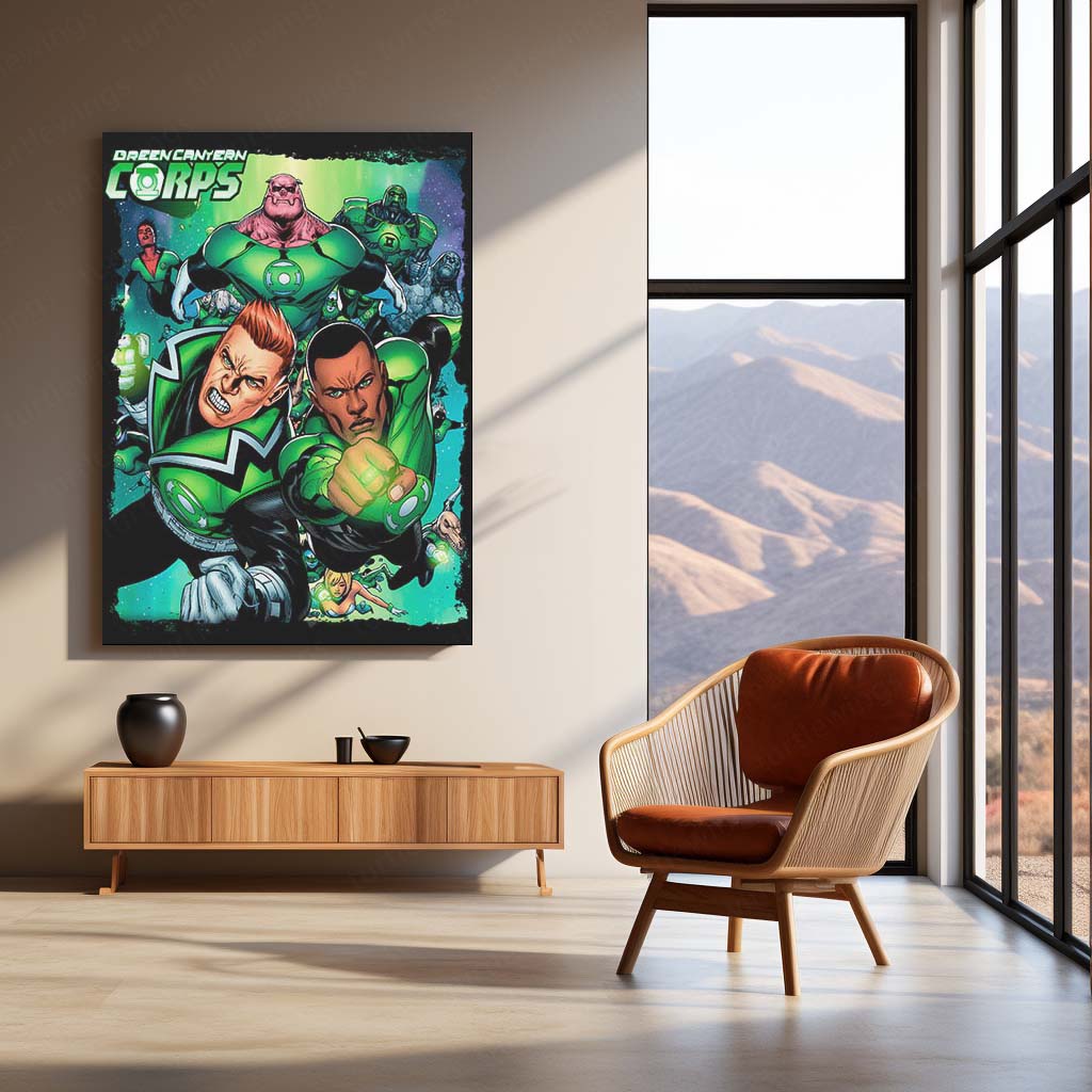 Depicting the legendary Green Lantern wielding his glowing power ring, this artwork embodies courage, strength, and intergalactic heroism. As a core member of the Justice League, the Emerald Warrior inspires fans with his unbreakable will and boundless imagination.