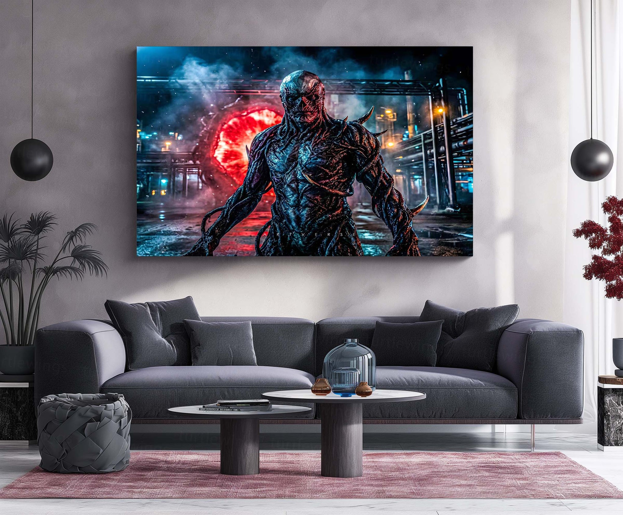 This Stranger Things–inspired Metal Frame captures the raw intensity, mystery, and chaos of the Upside Down. With a cinematic sci-fi aesthetic, industrial lighting, and a menacing central figure, this artwork is made for fans who love dark storytelling, supernatural energy, and bold interiors.