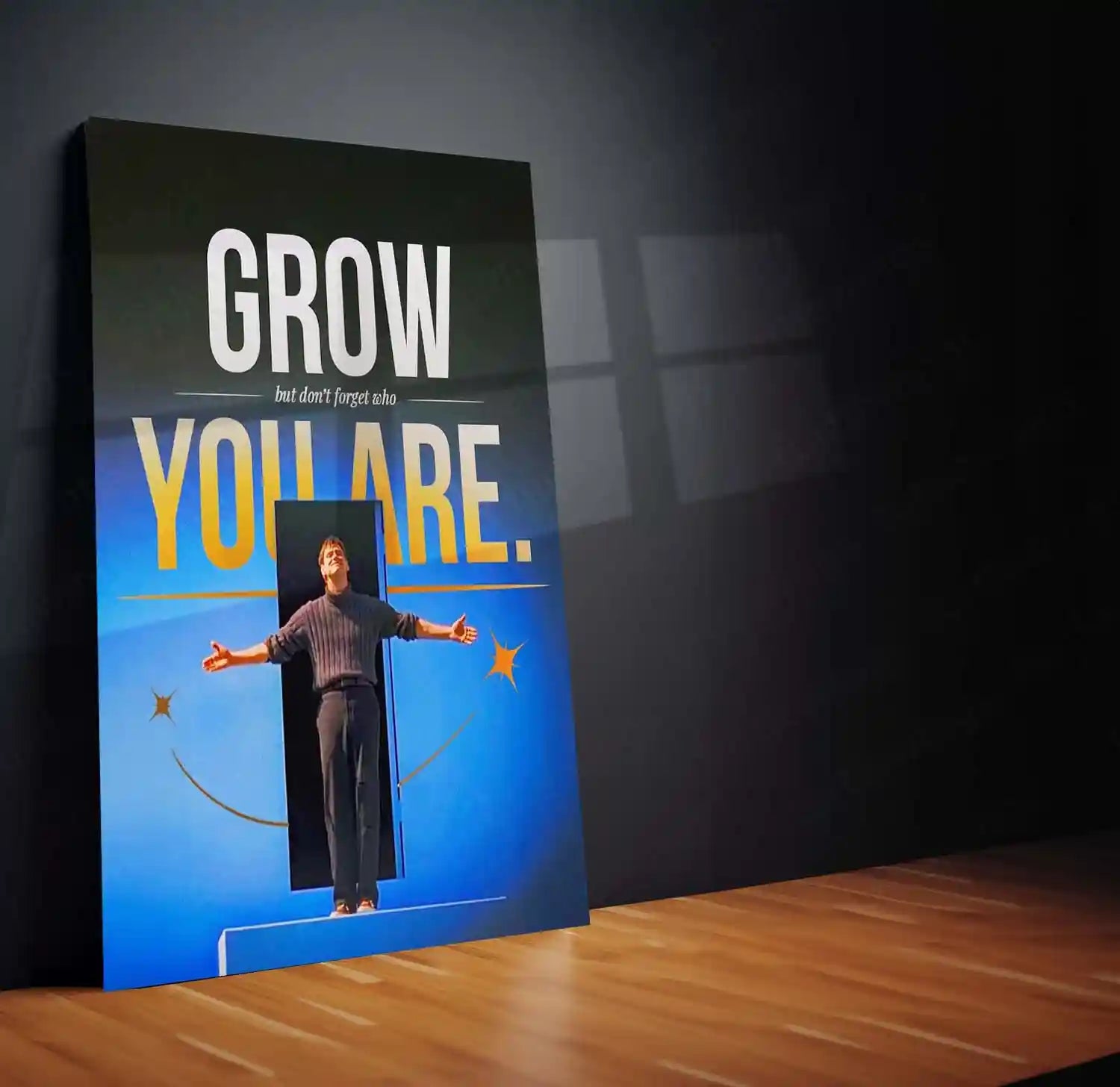 jim carrey quote metal frame, grow but don’t forget who you are poster, motivational quote metal print, jim carrey wall art, turtlewings quote metal frame