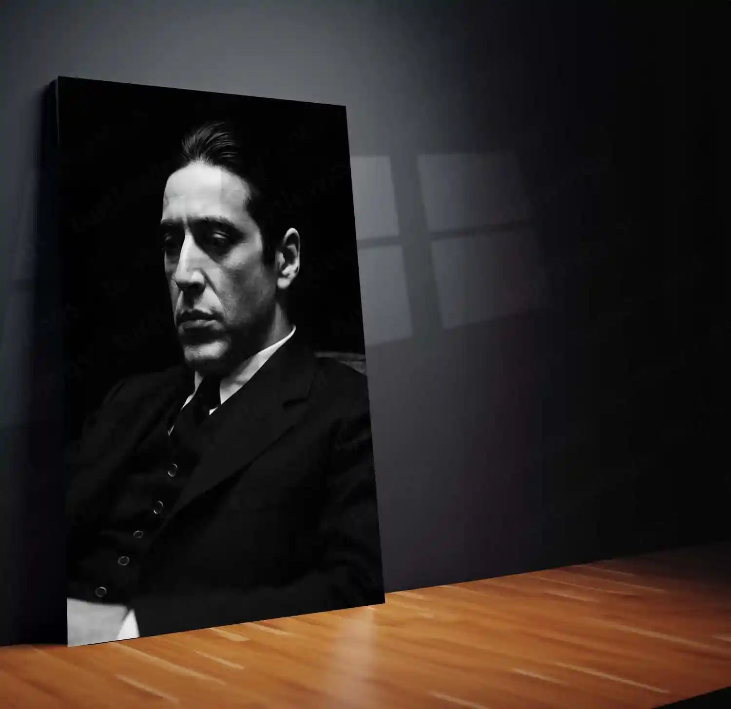 This The Godfather (Michael Corleone) metal frame captures the essence of calculated authority, emotional control, and strategic dominance. Inspired by Michael Corleone, the artwork reflects the transformation from restraint to command — where decisions are deliberate and loyalty is everything.