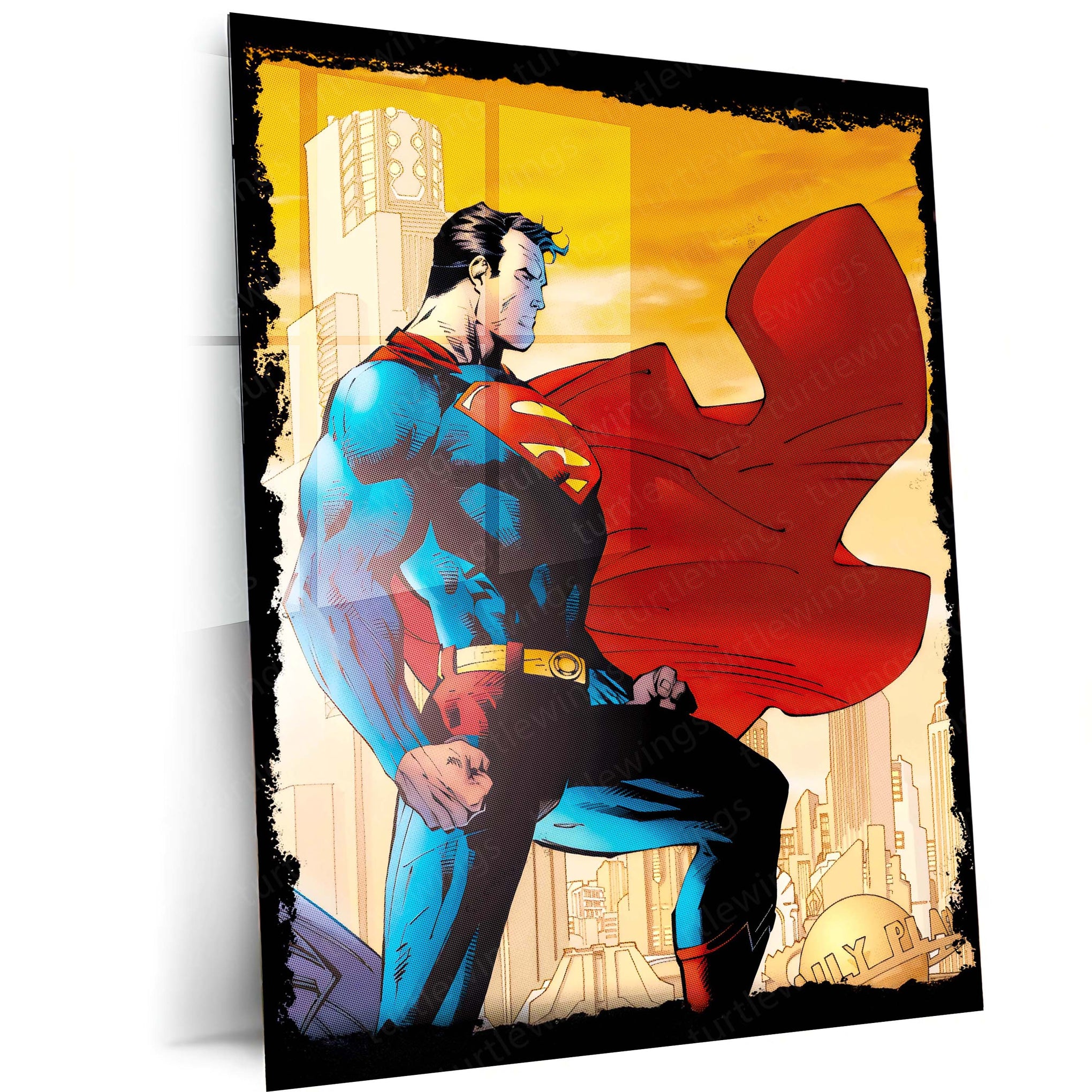 Superman metal poster, Man of Steel wall art, Clark Kent frame, Kryptonian superhero décor, DC Comics Superman artwork, Justice League Superman print, Hope symbol wall frame