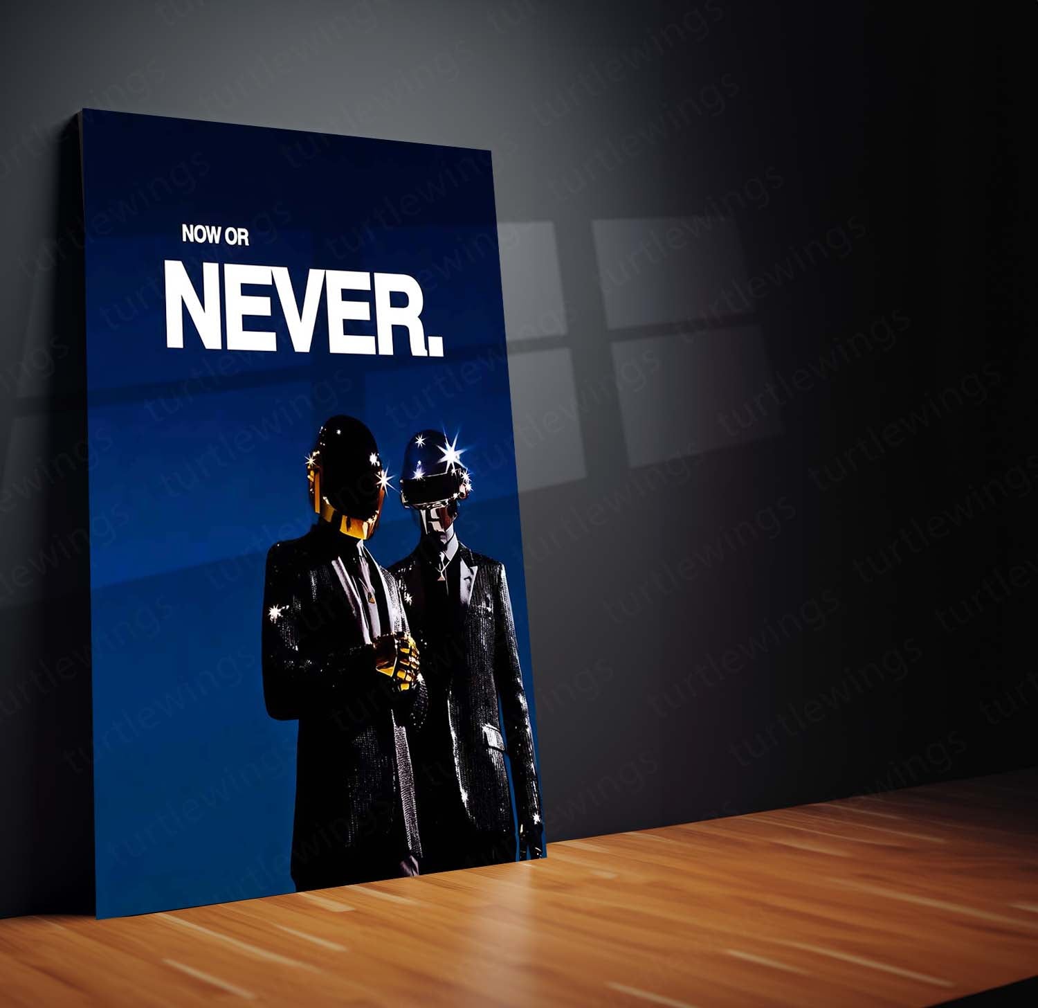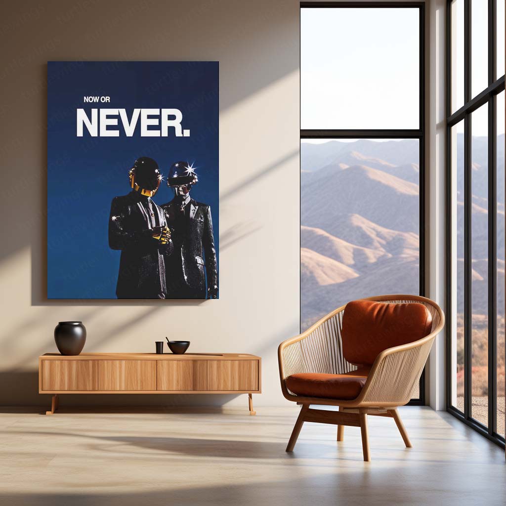 The Now or Never metal frame captures the Daft Punk–inspired philosophy of decisive action — a mindset that understands momentum is fragile and opportunities don’t wait.