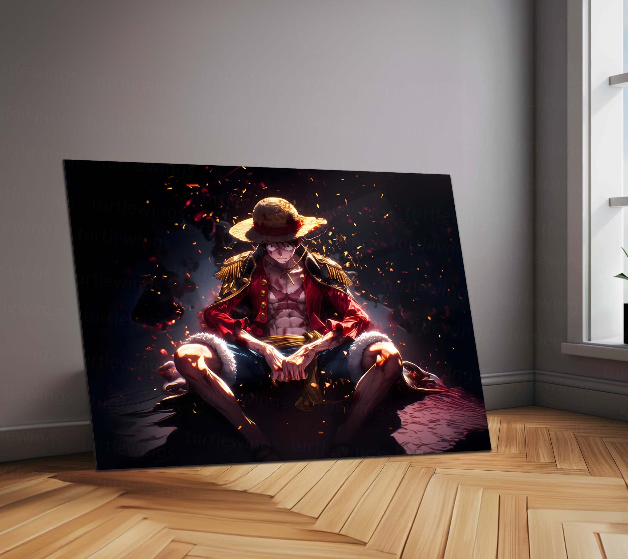 Luffy metal frame, One Piece wall art, Monkey D. Luffy poster, Turtlewings anime decor, Straw Hat Pirates artwork, pirate king anime print, 4 sizes and custom