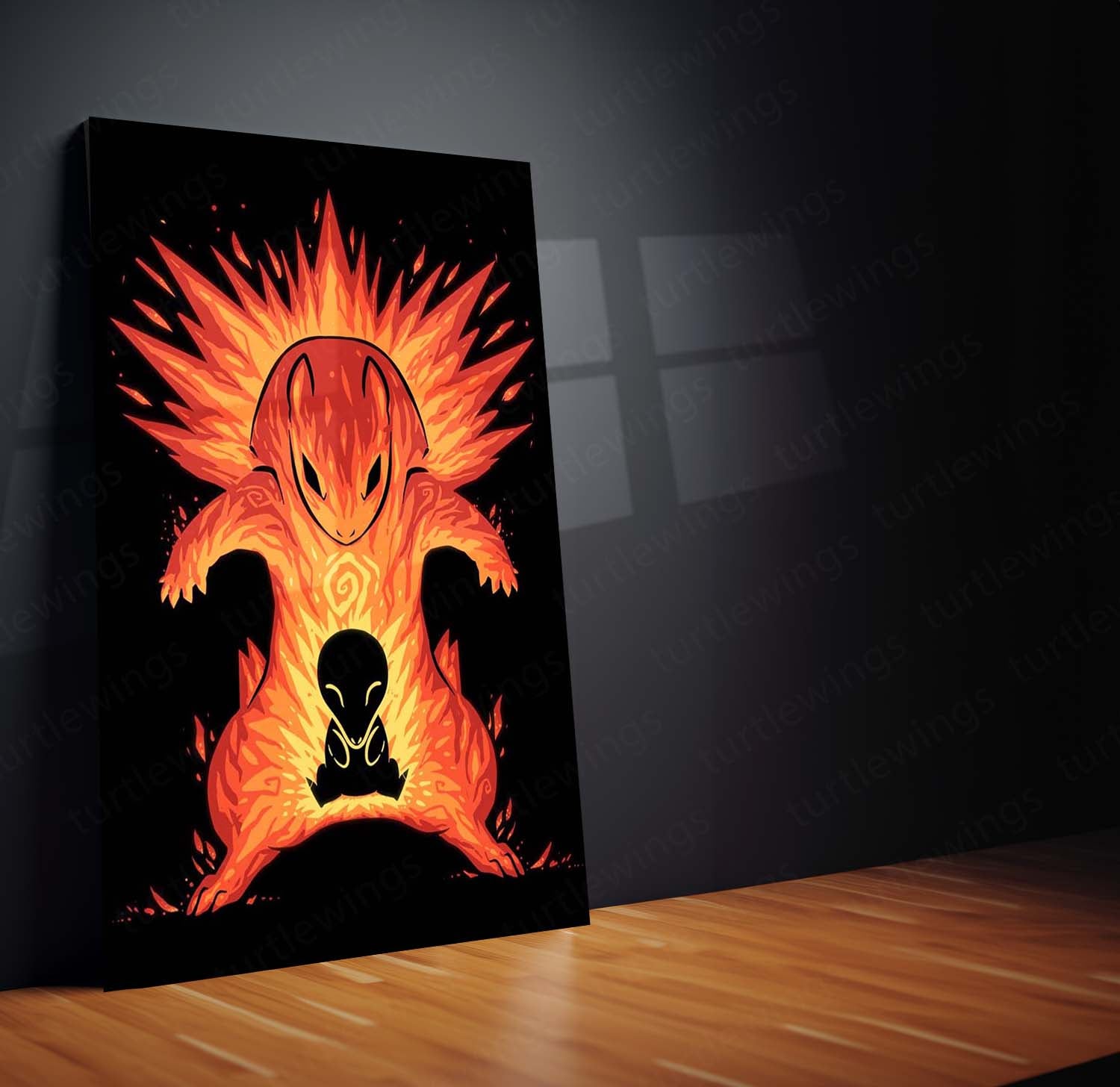pokemon wall decor india, anime gaming room wall art, fire aesthetic metal poster