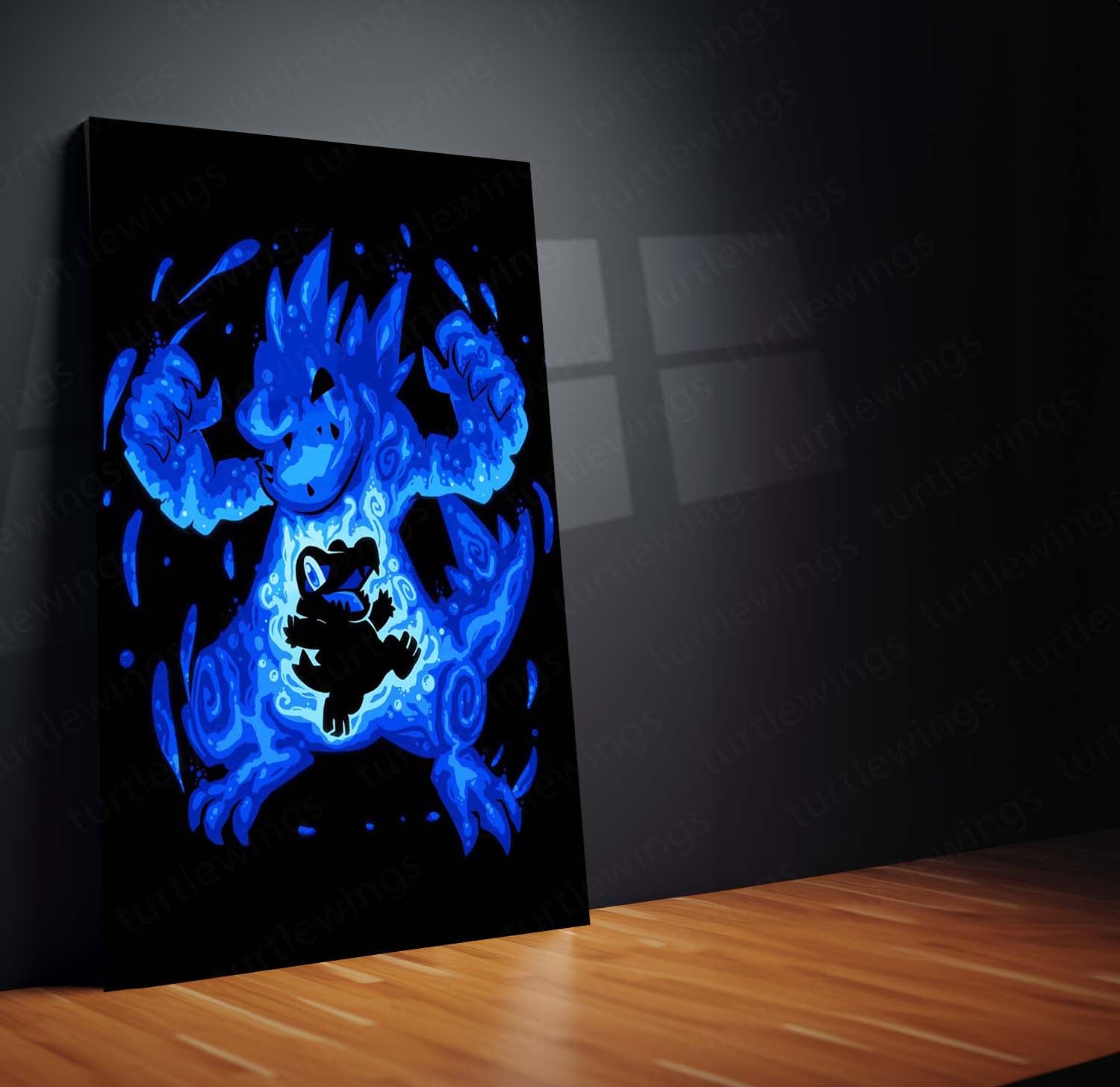 pokemon water evolution metal frame, water type pokemon wall art, aquatic evolution anime poster, pokemon inspired metal print
