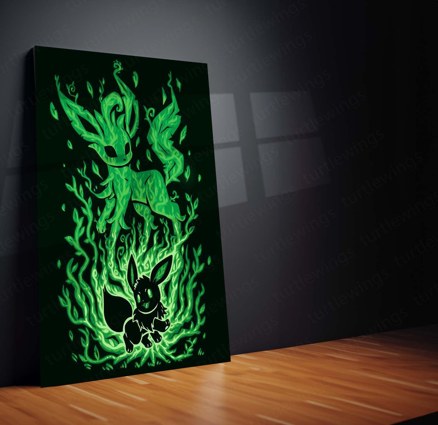 leaf pokemon metal frame, leafeon evolution wall art, grass evolution pokemon poster, leaf pokemon metal print