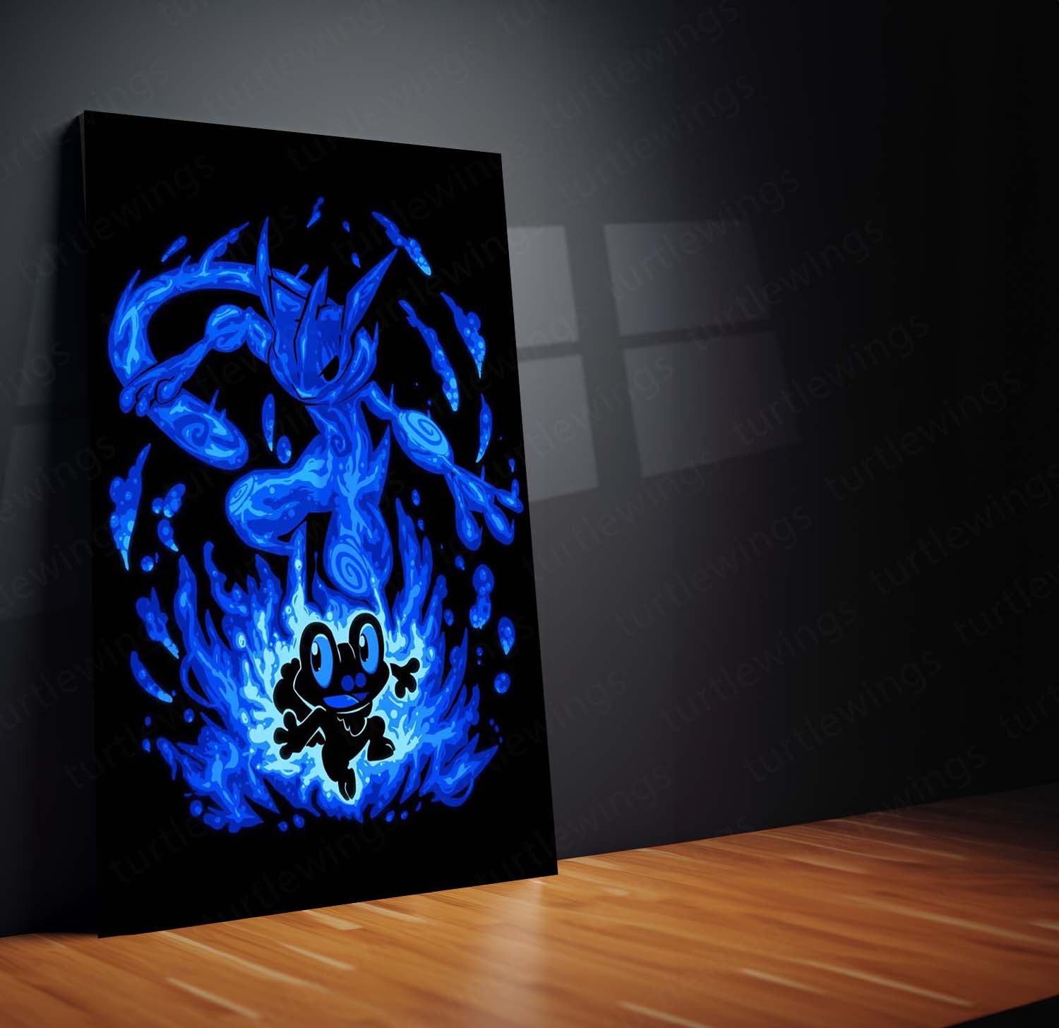 water ninja pokemon metal frame, greninja evolution wall art, froakie evolution poster, ninja pokemon metal print