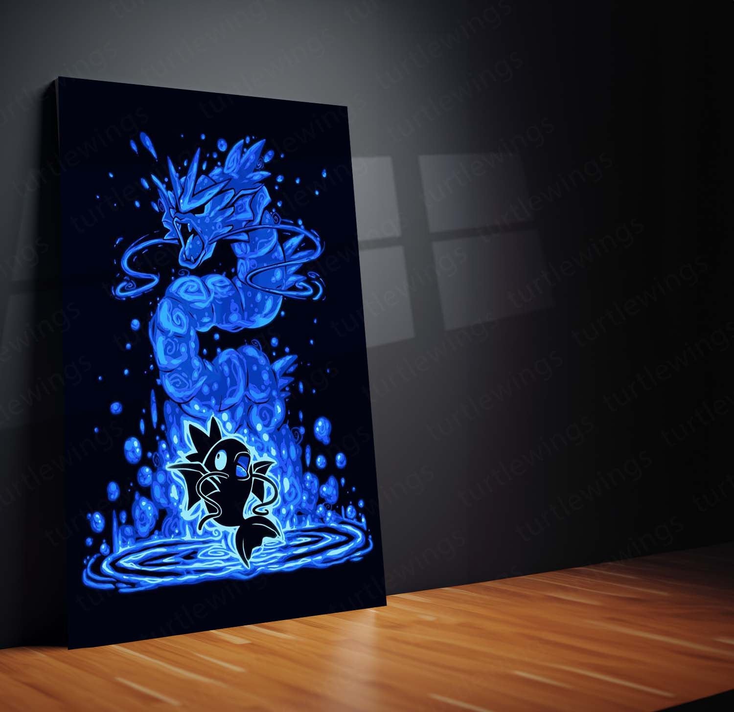 waterfall dragon pokemon metal frame, gyarados evolution wall art, magikarp to gyarados poster, dragon water pokemon metal print