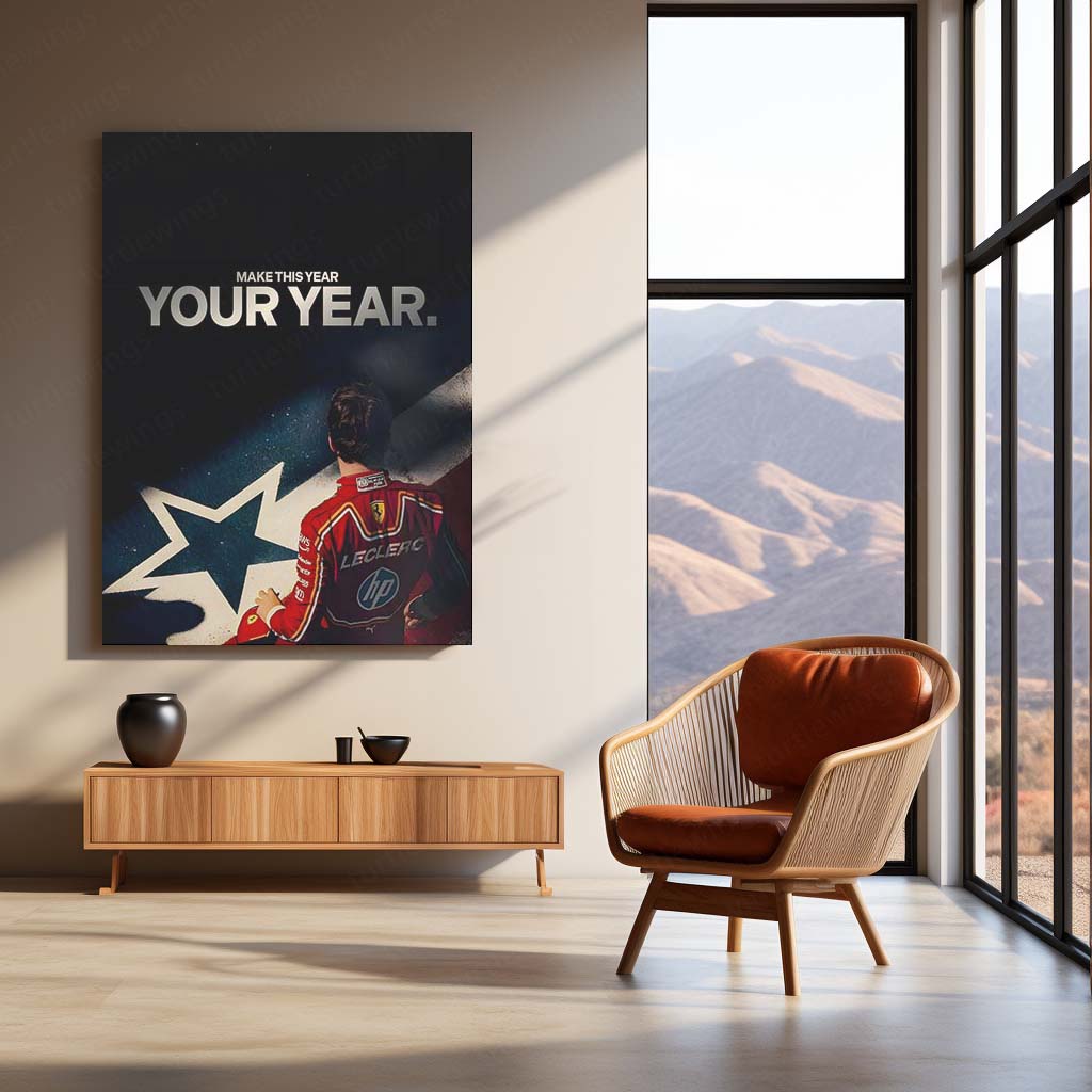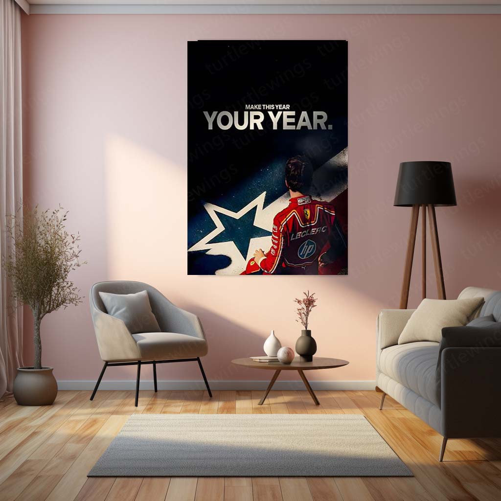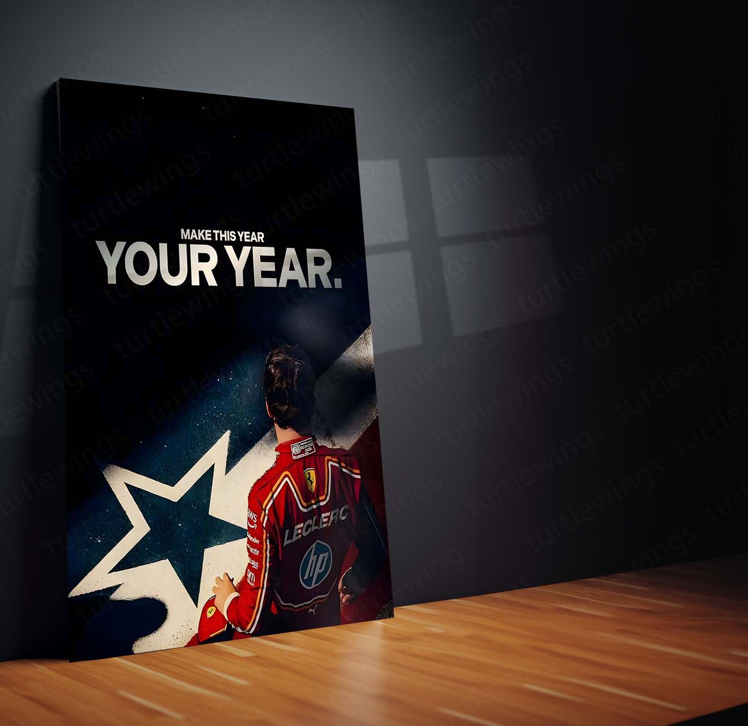 charles leclerc metal poster, make this year your year wall art, ferrari f1 motivational decor, formula 1 mindset metal frame, racing inspiration poster, turtlewings metal print