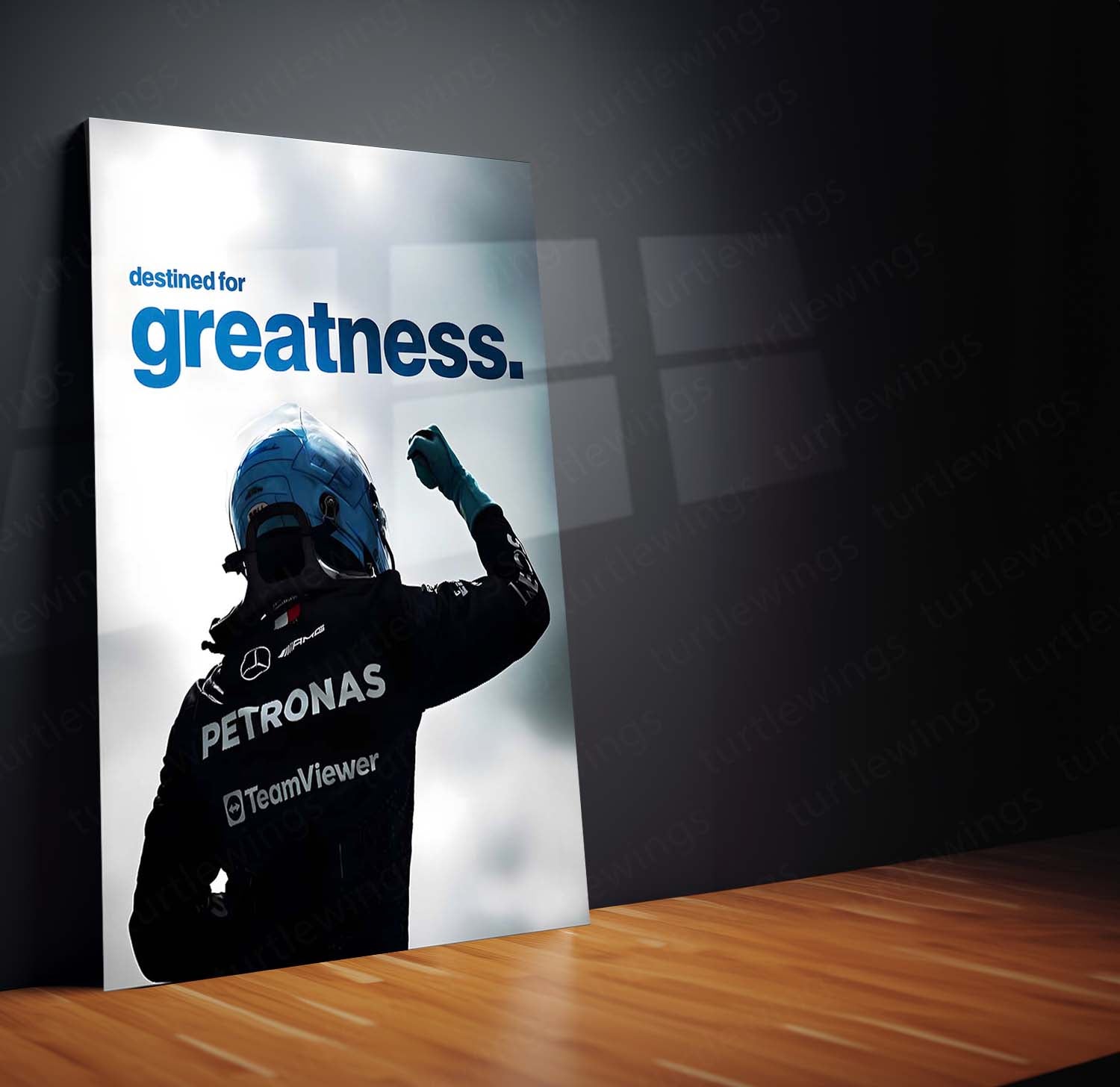 destined for greatness metal poster, george russell wall art, formula racing motivation decor, future champion quote metal frame, success mindset wall art, turtlewings metal print