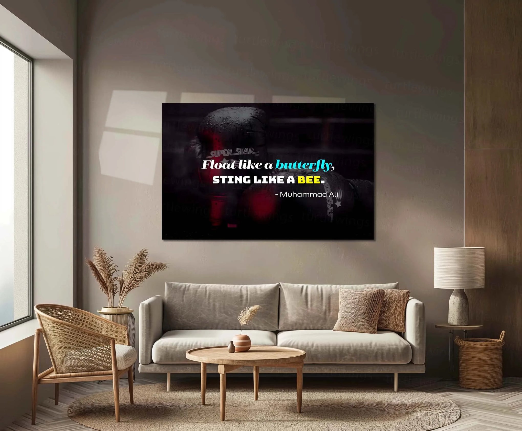 Featuring the legendary quote “Float like a butterfly, sting like a bee” — this artwork captures the perfect balance of grace and power, inspiring confidence, courage, and relentless grit.