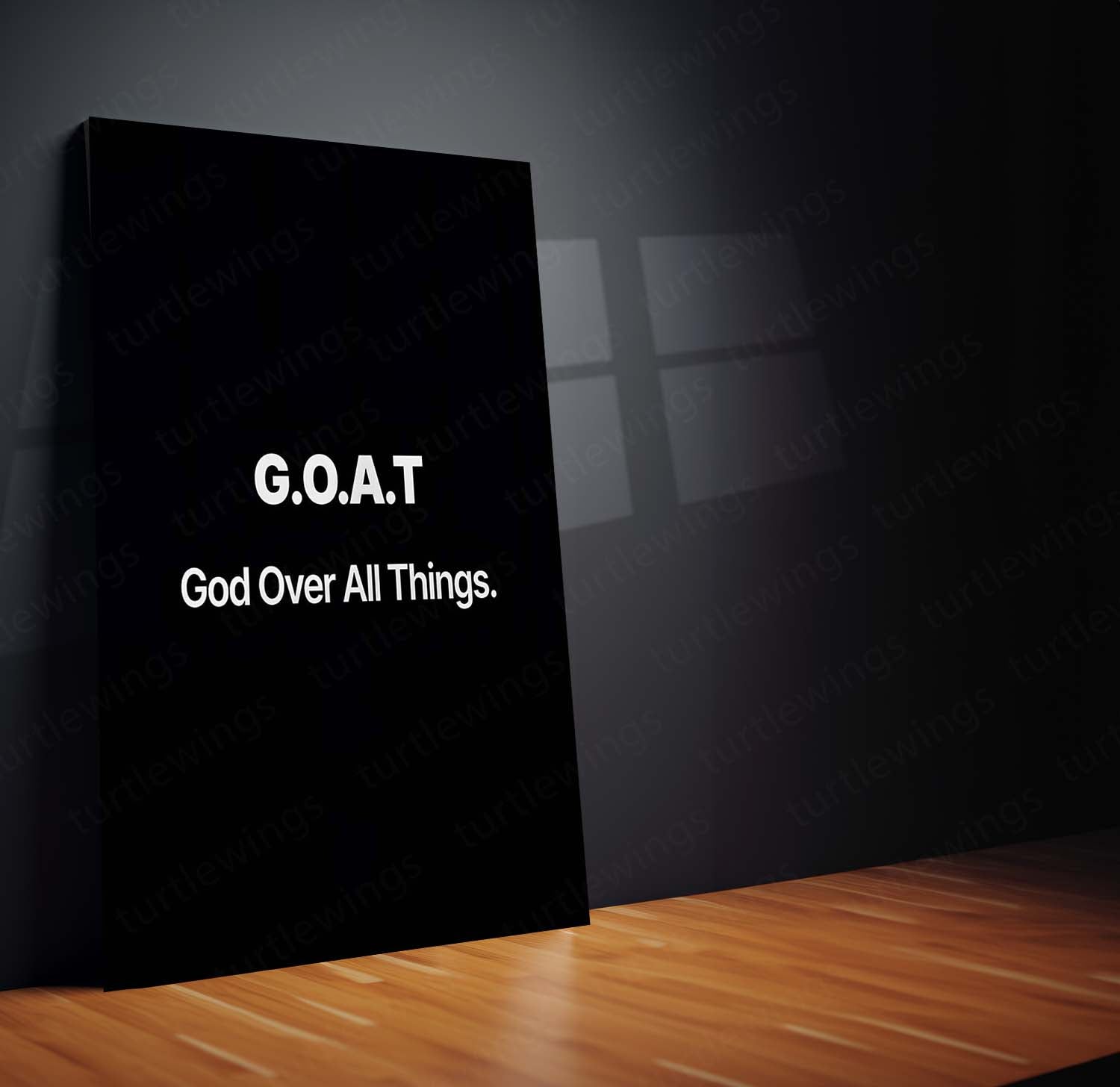 GOAT God over all things poster, faith metal wall art, christian quote metal poster, god first motivation poster, turtlewings faith decor