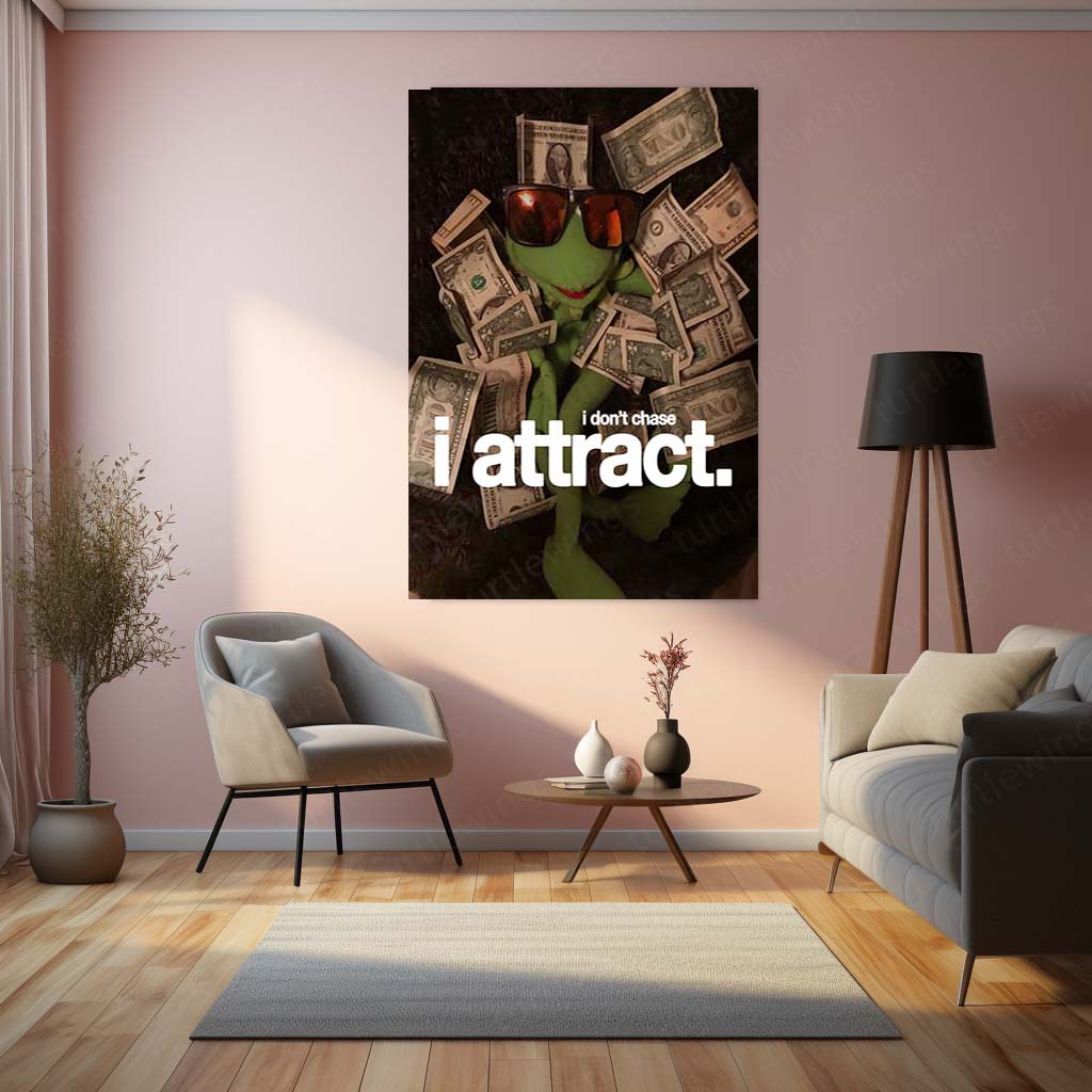 i don’t chase i attract poster, abundance mindset wall art, manifestation quote metal poster, money motivation decor, hustle mindset art, turtlewings metal poster, entrepreneur wall decor