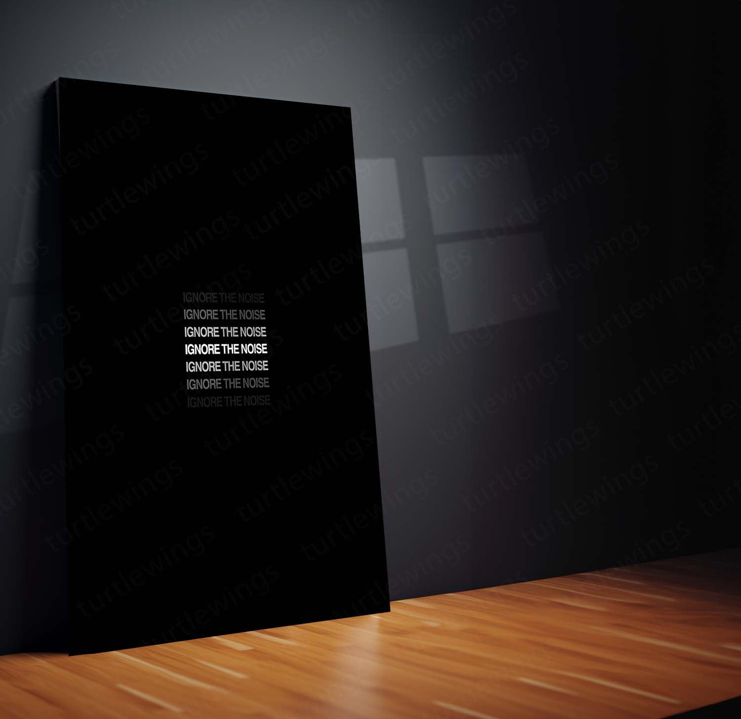 The “Ignore the Noise” Metal Poster by TurtleWings is a minimalist, high-impact artwork designed for those who stay locked in on their goals. With a clean black background and repeated typography fading into focus, this design visually represents clarity, discipline, and mental strength.