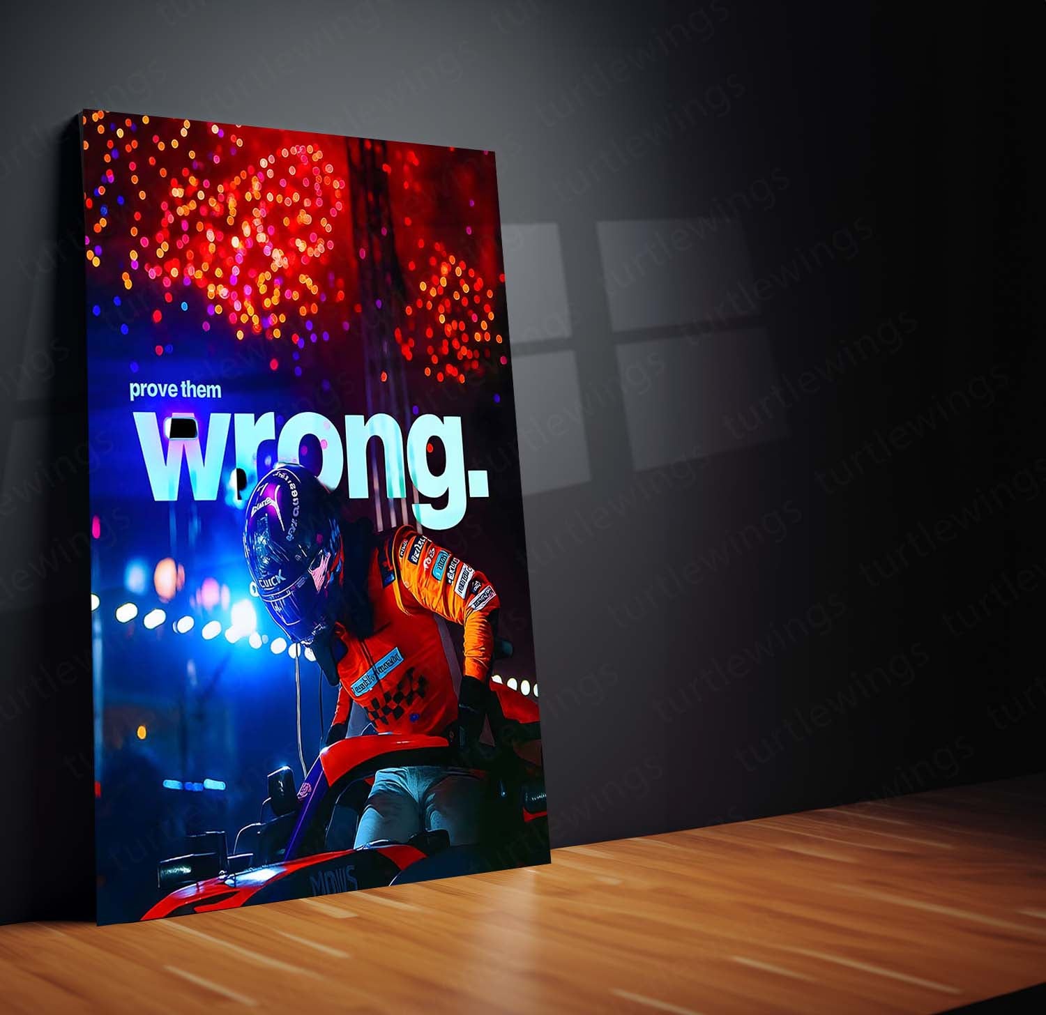 lando norris metal poster, prove them wrong wall art, formula 1 motivation quote, f1 comeback mindset decor, modern motorsport metal frame, turtlewings metal print india