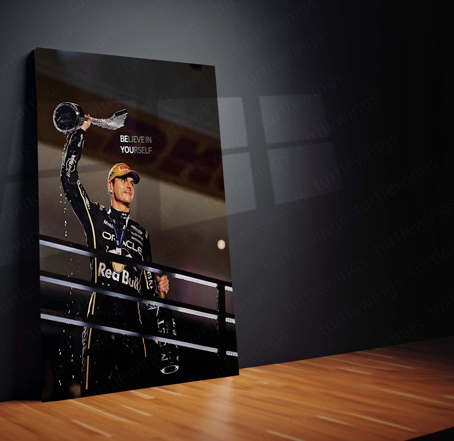 Inspired by the Las Vegas Grand Prix podium moment, this Believe in Yourself Metal Frame captures the exact emotion of victory earned through self-belief, pressure handling, and relentless confidence.