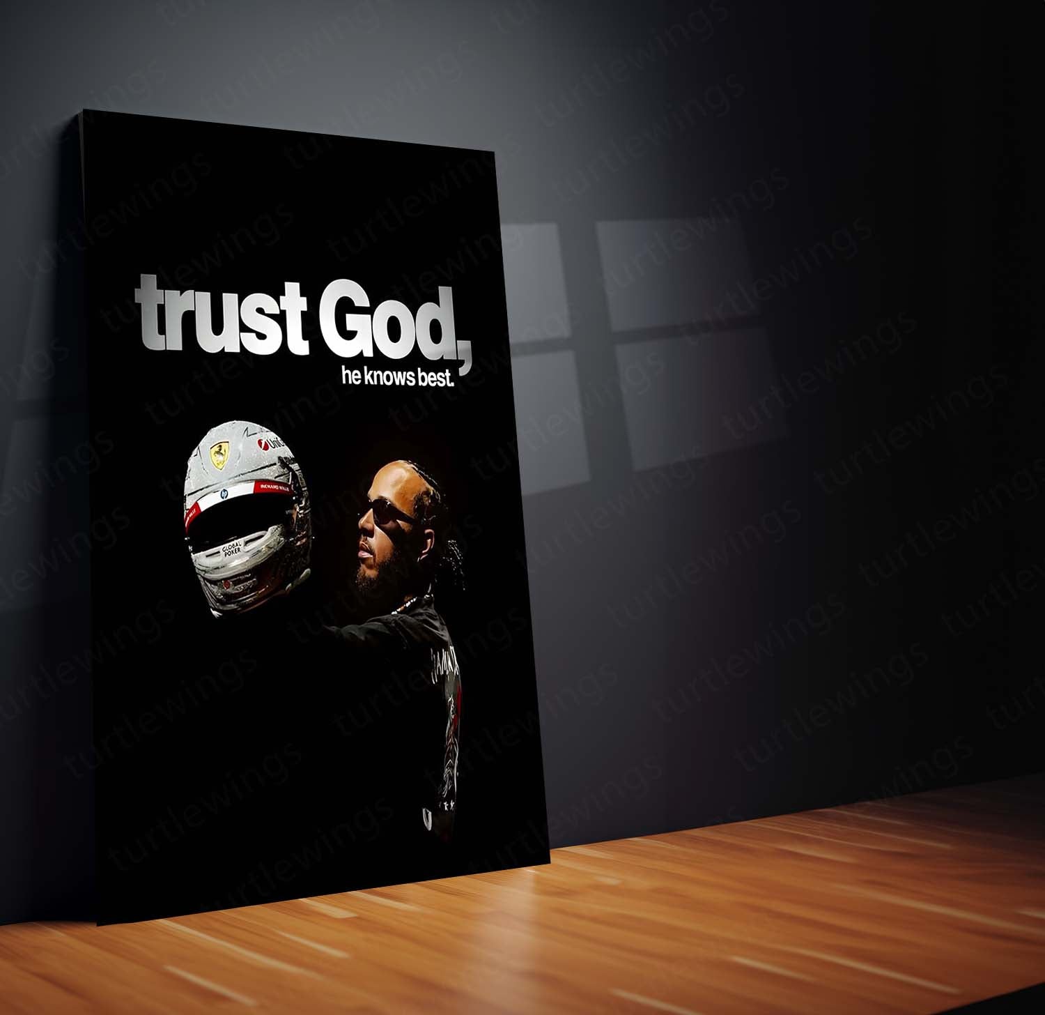 Quote Metal Poster | Lewis Hamilton – Trust God’s Timing Metal Frame Faith, Patience & Divine Alignment Wall Art | Calm Strength Mindset Quote Metal Poster