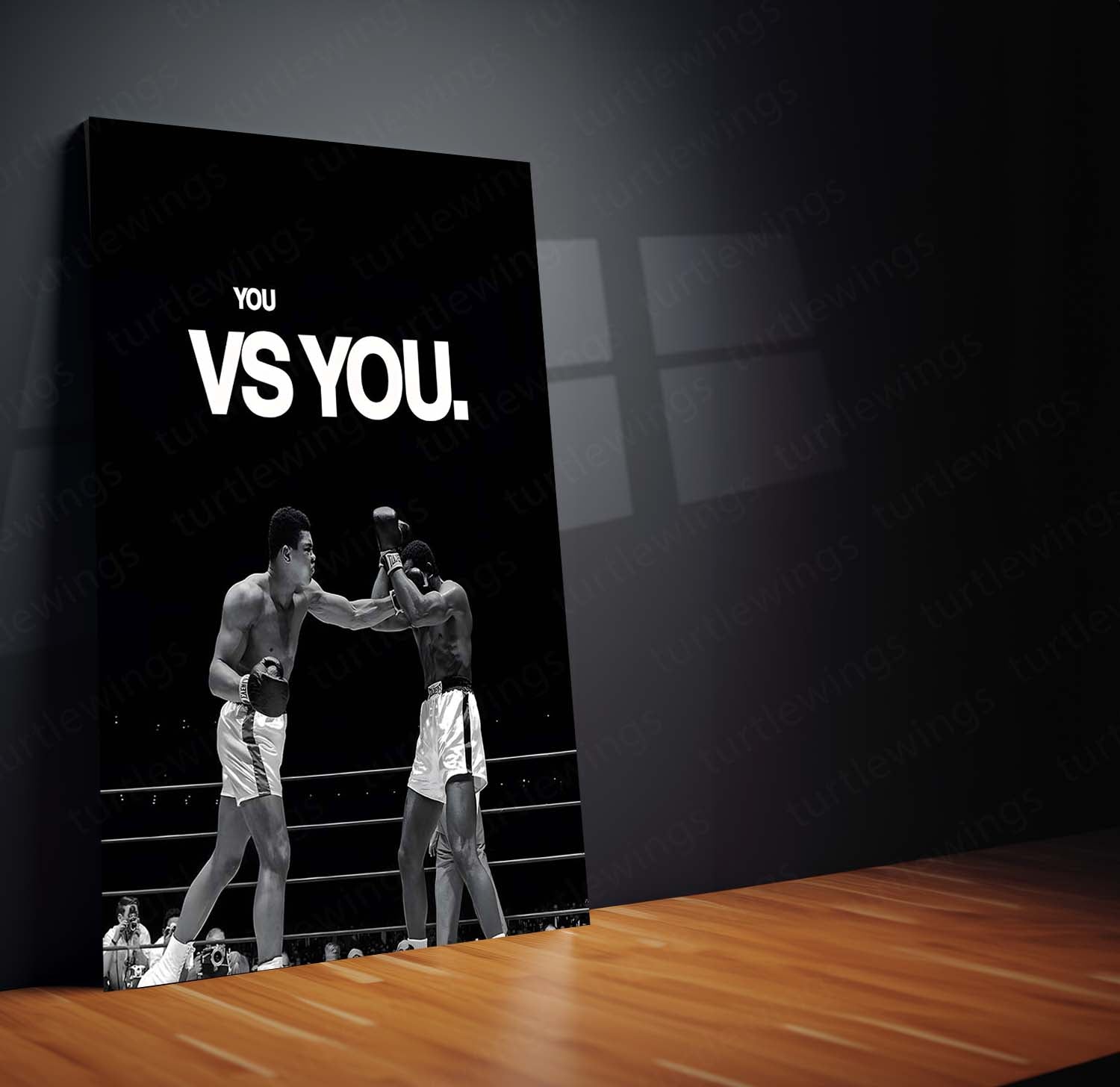 muhammad ali poster, you vs you wall art, boxing motivation metal frame, champion mindset poster, self discipline wall decor, inner battle motivation art, turtlewings metal print india