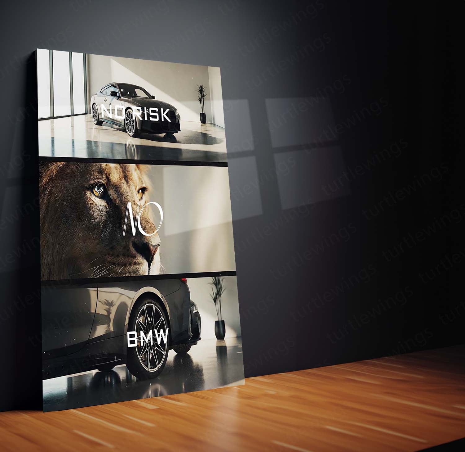 no risk no bmw poster, bmw motivation wall art, luxury hustle metal frame, ambition quote metal poster, car mindset decor, turtlewings metal print