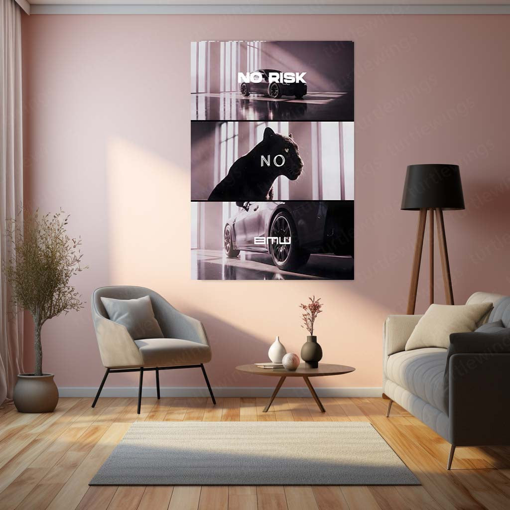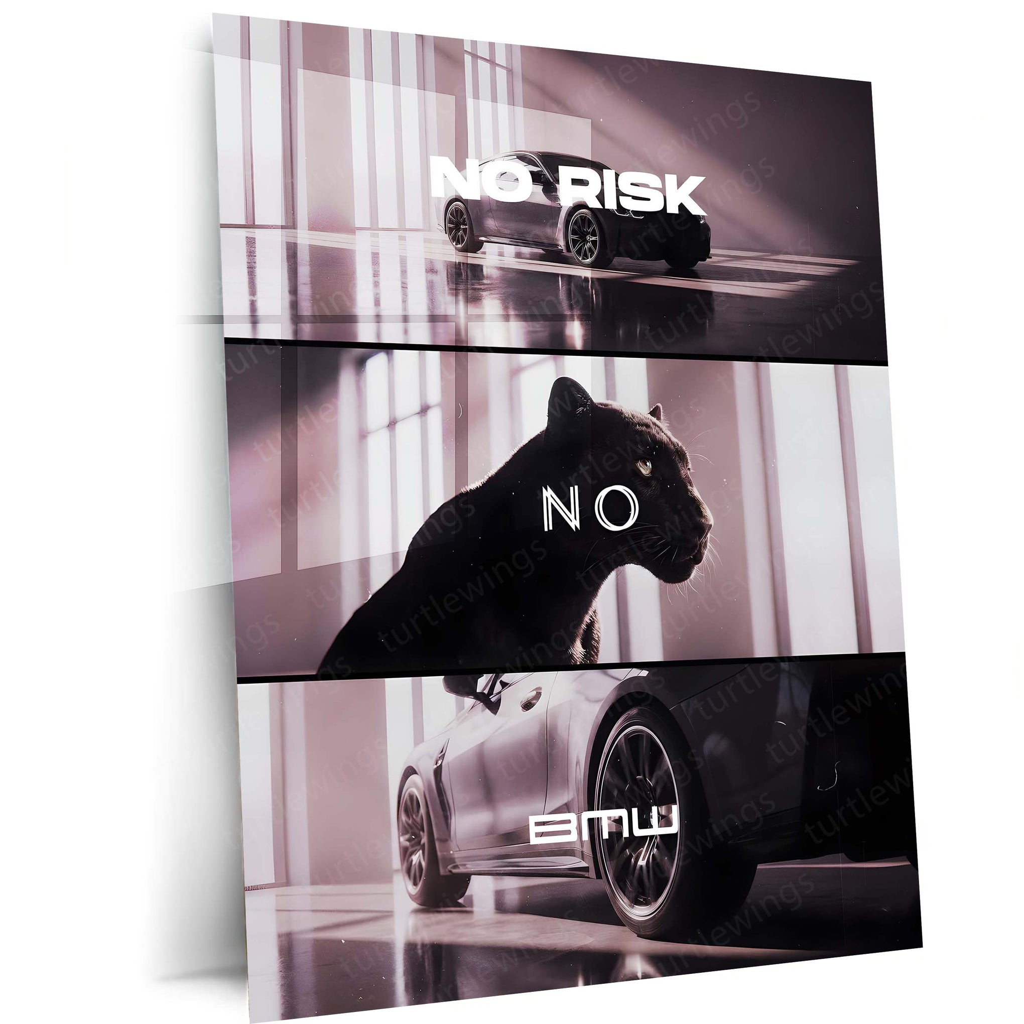 no risk no bmw poster, bmw motivation wall art, luxury hustle metal frame, ambition quote metal poster, car mindset decor, turtlewings metal print