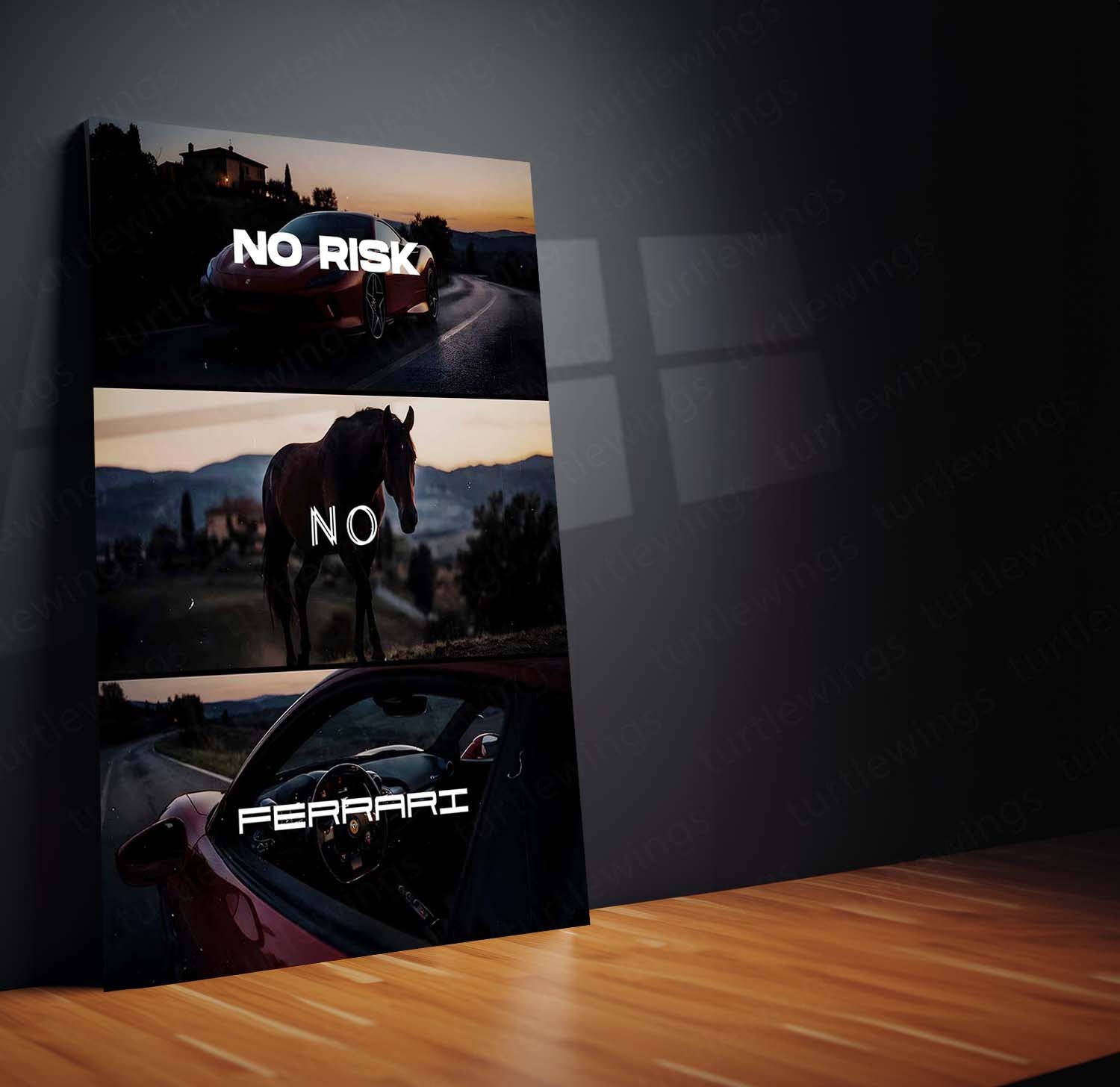 no risk no ferrari poster, ferrari wall art metal frame, luxury car mindset decor, supercar motivation wall art, elite hustle poster, turtlewings metal print