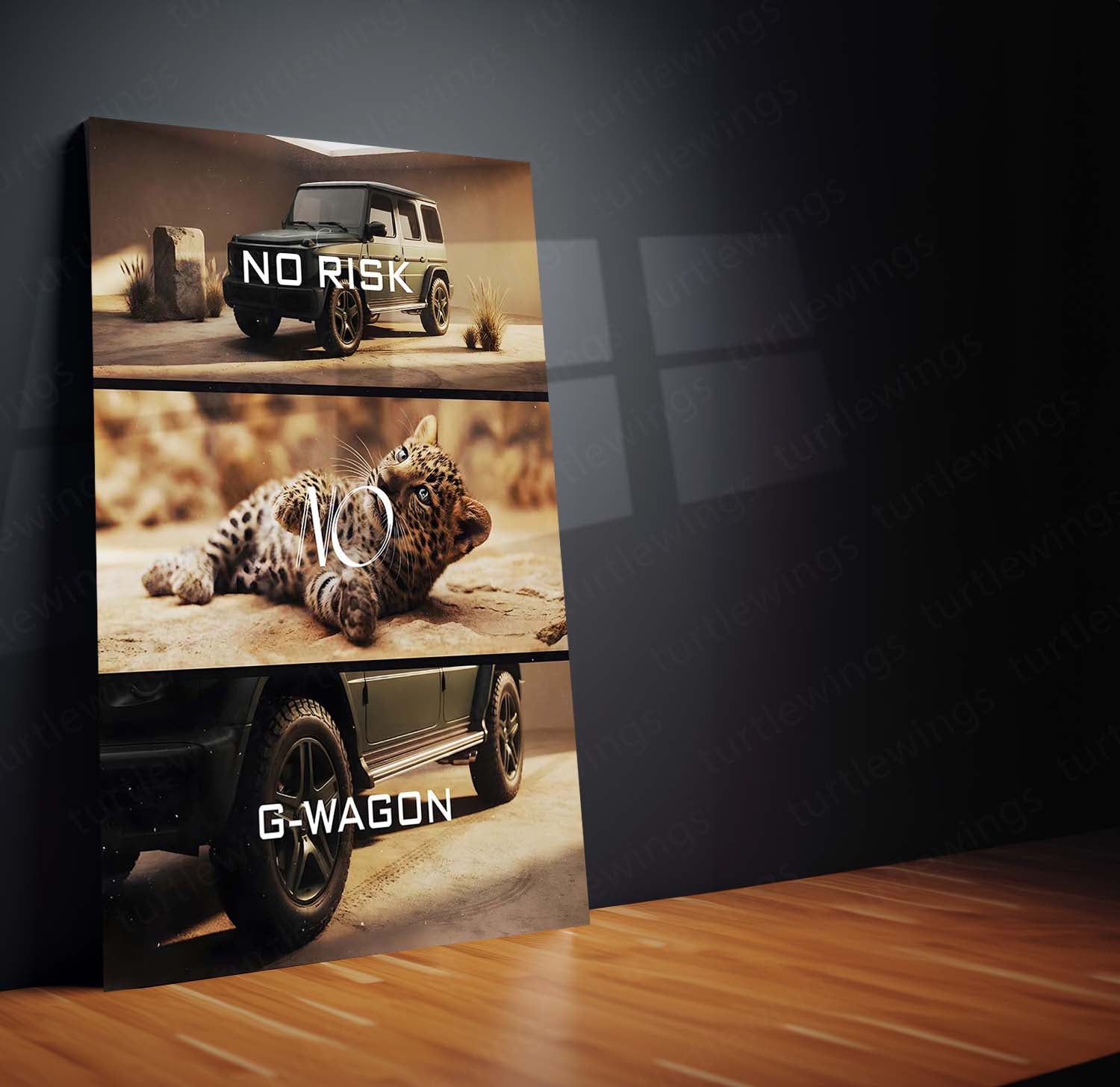 no risk no g wagon metal poster, g wagon wall art metal frame, luxury suv motivation poster, mercedes g wagon decor, power mindset wall art, turtlewings metal print