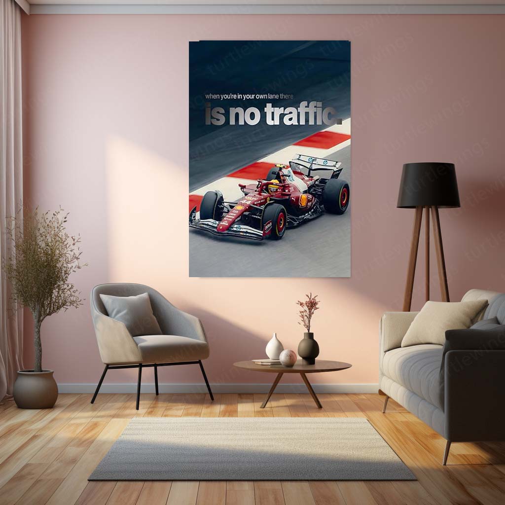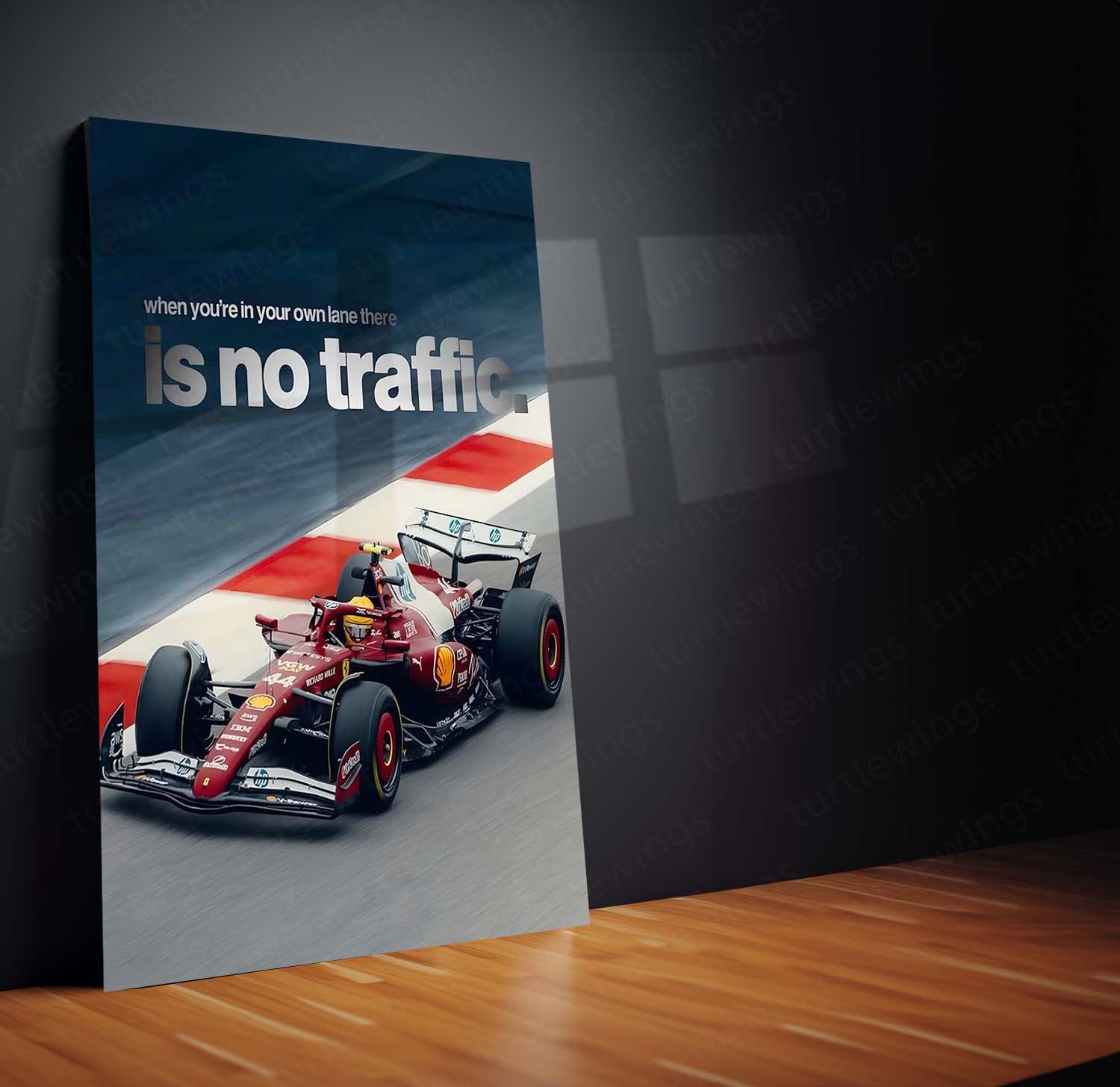 no traffic in your lane poster, ferrari f1 metal frame, formula 1 motivation wall art, racing mindset quote poster, elite focus decor india, turtlewings metal print