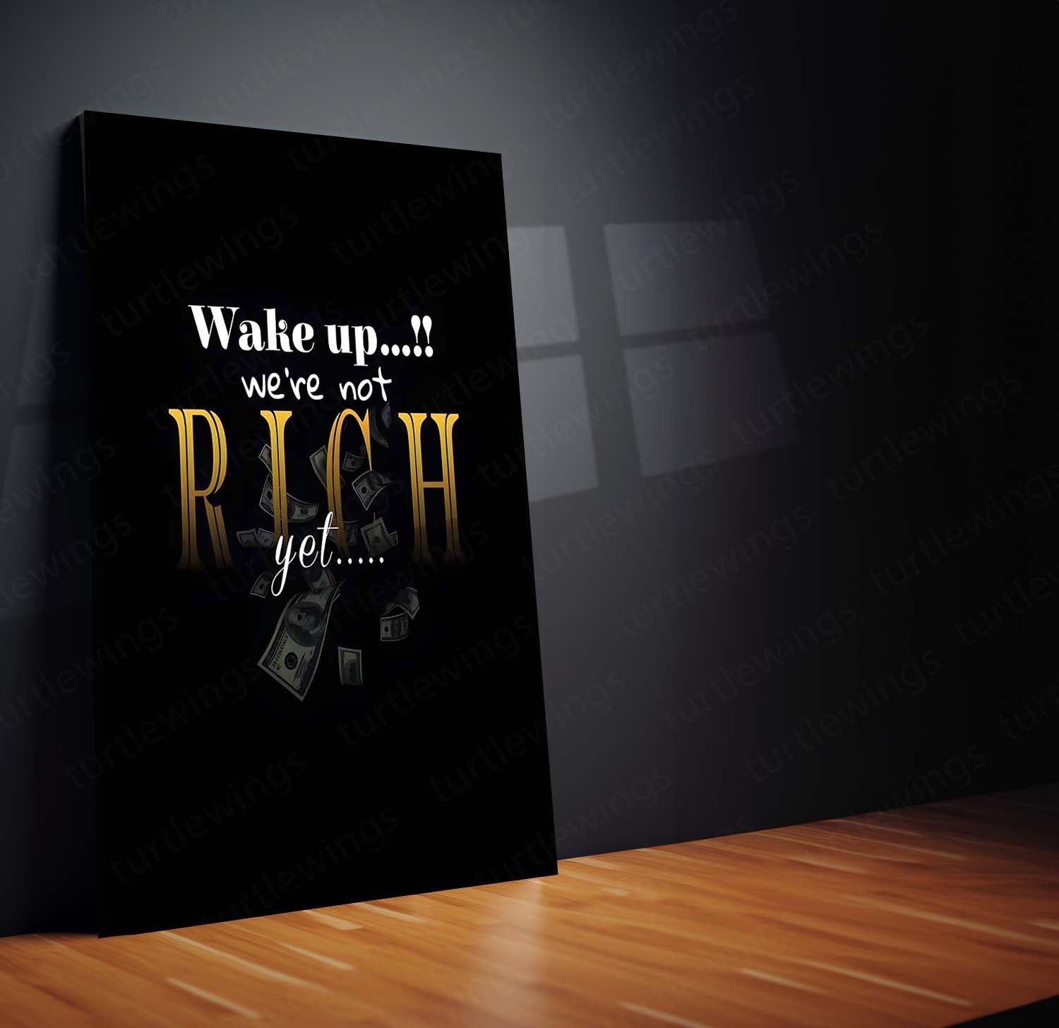 not rich yet metal poster, money mindset wall art, hustle quote metal frame, rich mindset decor, entrepreneur motivation poster, turtlewings metal frame, luxury motivation wall art india