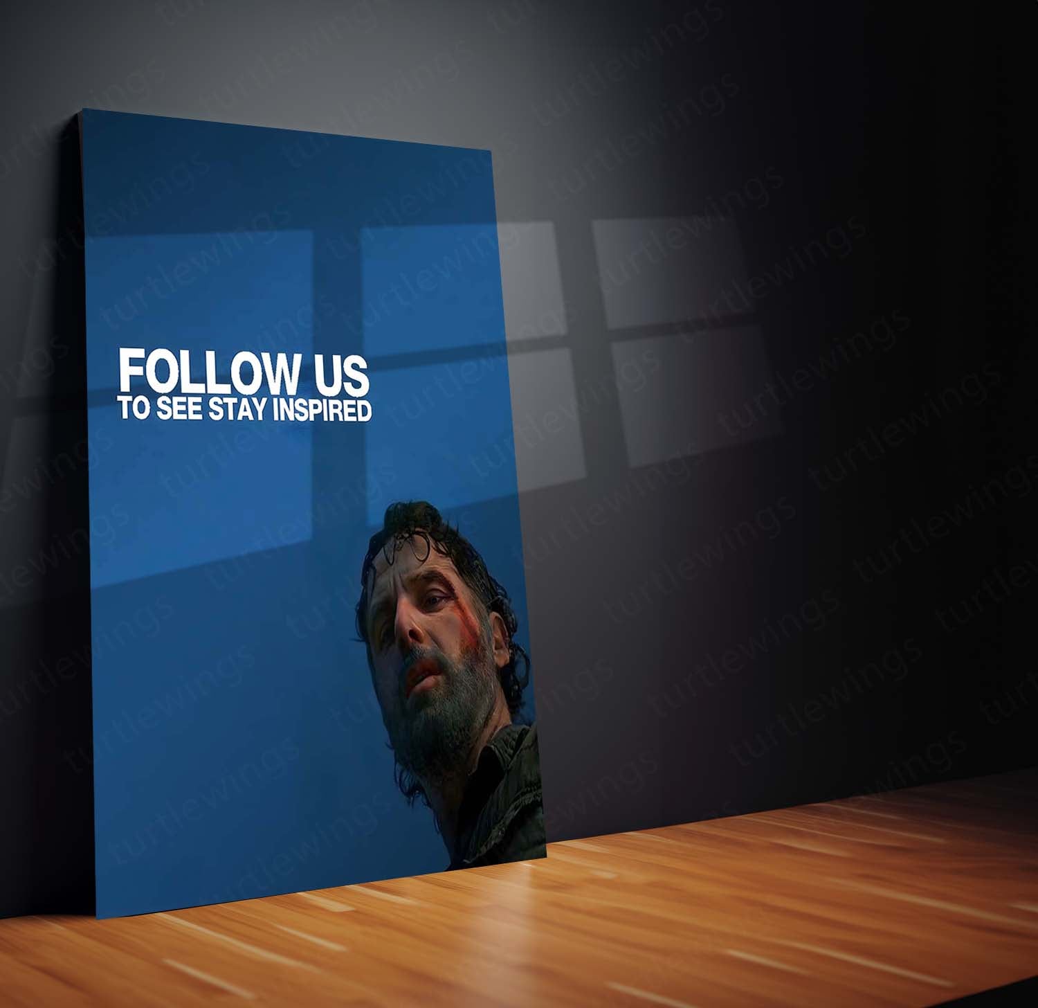 rick grimes metal poster, stay inspired wall art, survival mindset decor, leadership motivation metal frame, walking dead inspired wall art, turtlewings metal print india