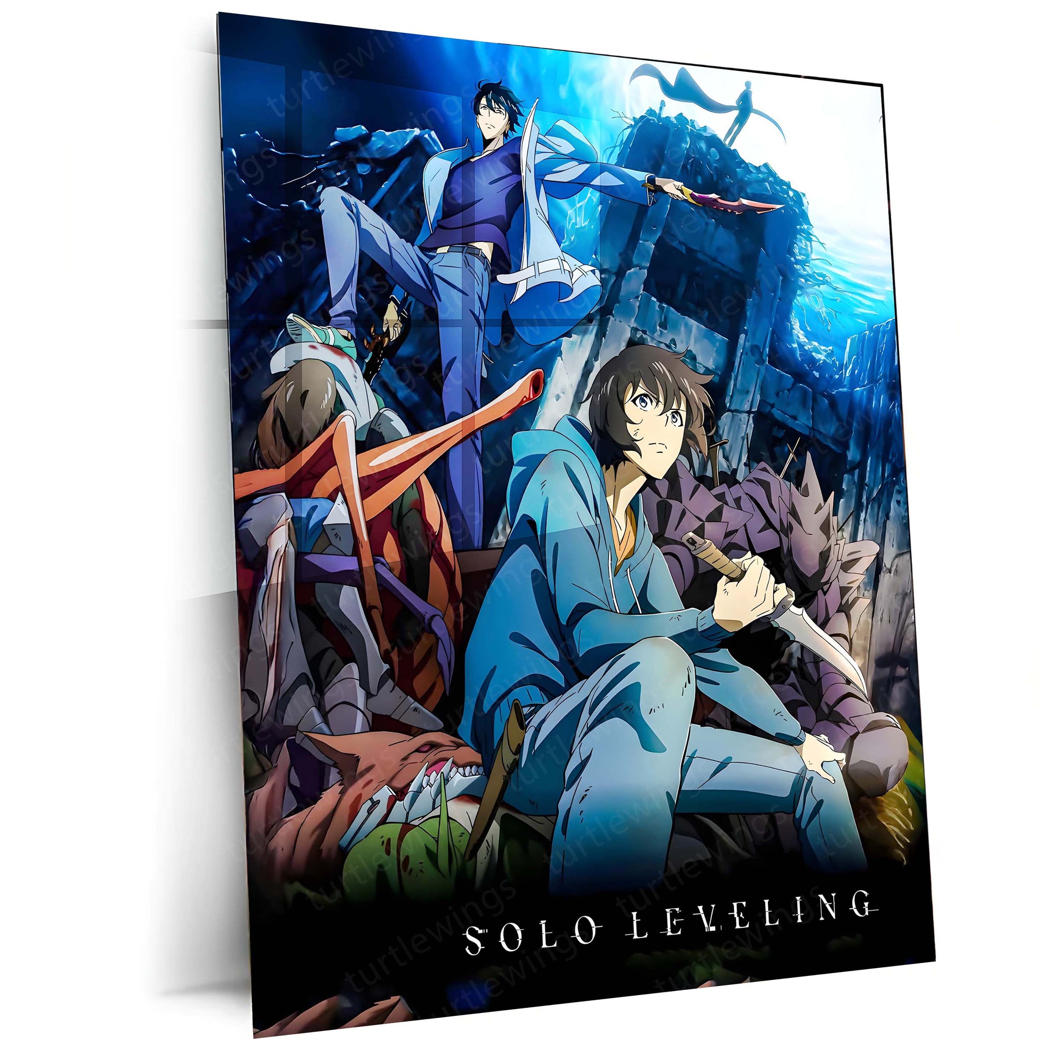 solo leveling wall art, sung jin woo poster, anime hunter decor, shadow monarch artwork, korean manhwa metal frame, turtlewings anime poster, fantasy battle art, solo leveling season 2 decor