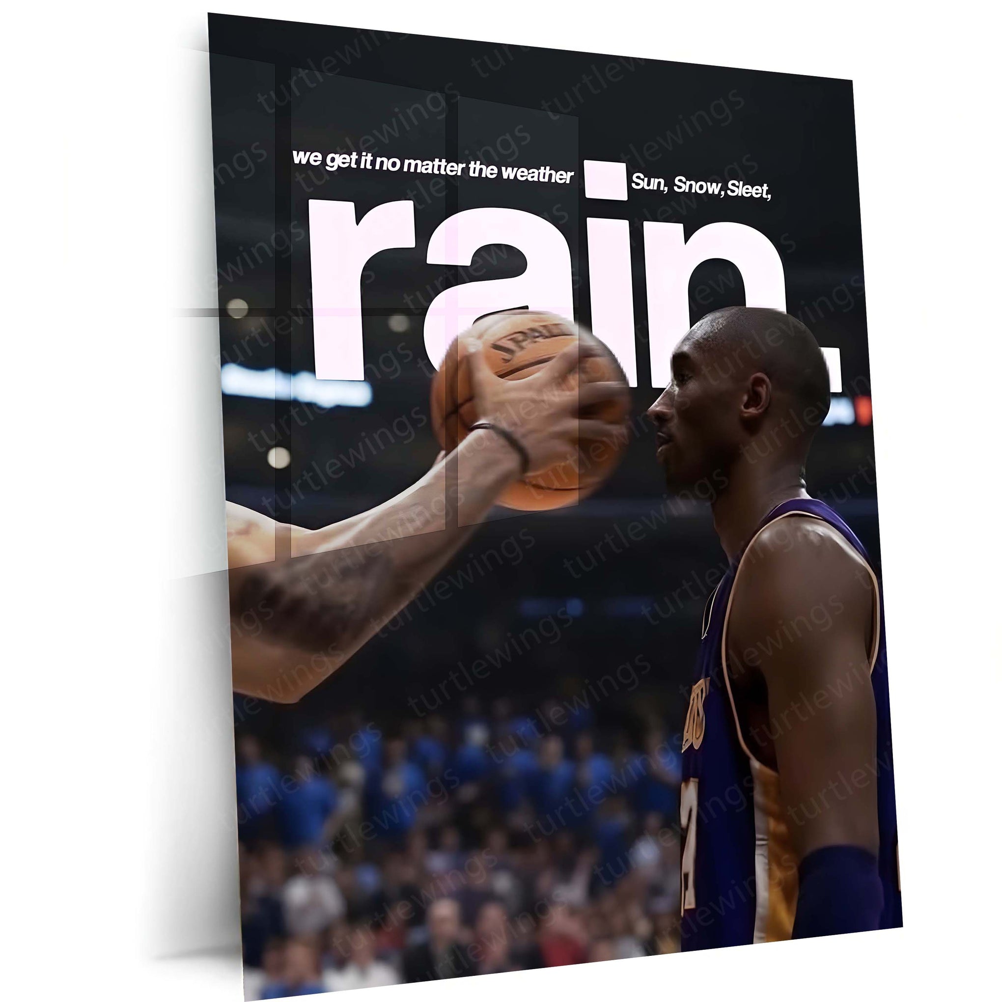 kobe bryant metal poster, rain or shine quote wall art, mamba mentality decor, basketball motivation metal frame, nba legend mindset poster, turtlewings metal print india