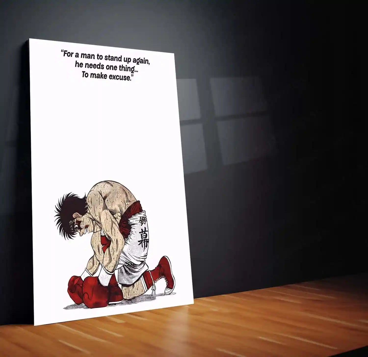 Quote Metal Poster | Hajime No Ippo – For a Man to Stand Up Again | Anime Boxing Motivation Metal Frame | Inspirational Wall Art