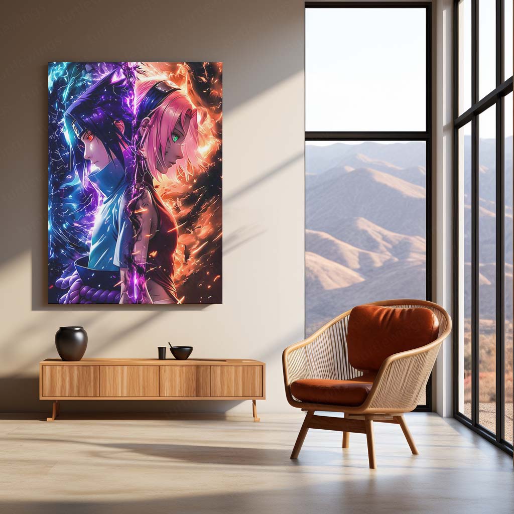 Experience the fierce connection between love, power, and destiny with the Sasuke x Sakura Metal Frame Poster — a breathtaking fusion of lightning and fire symbolizing their eternal bond.