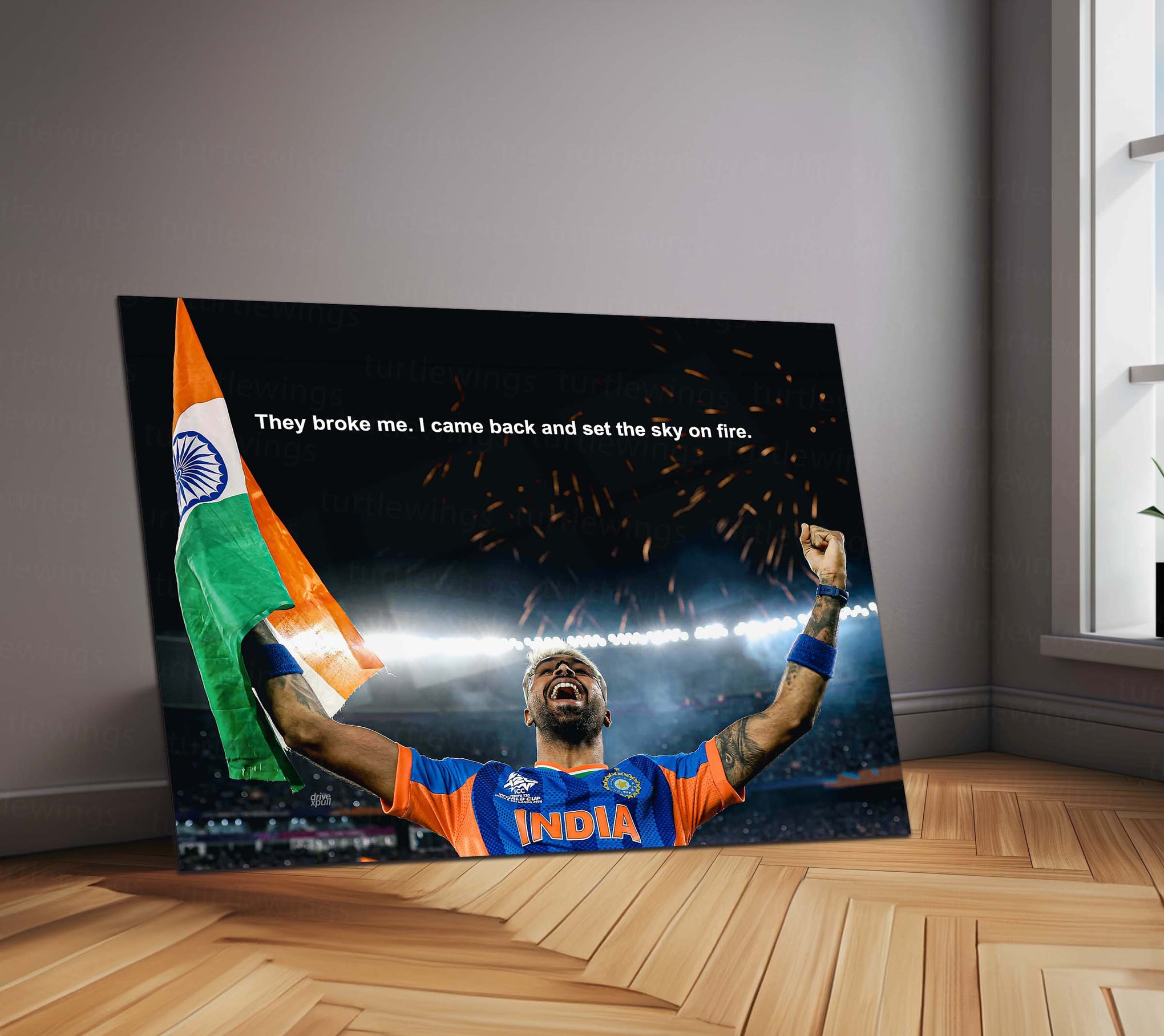 hardik pandya poster, ICC T20 World Cup 2026 wall art, cricket comeback motivation metal frame