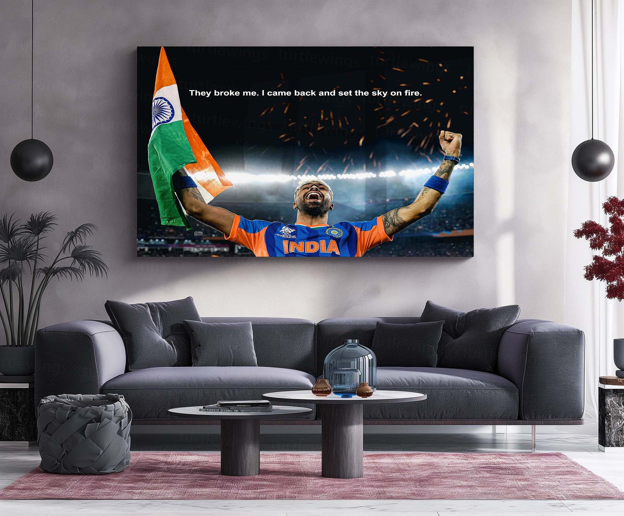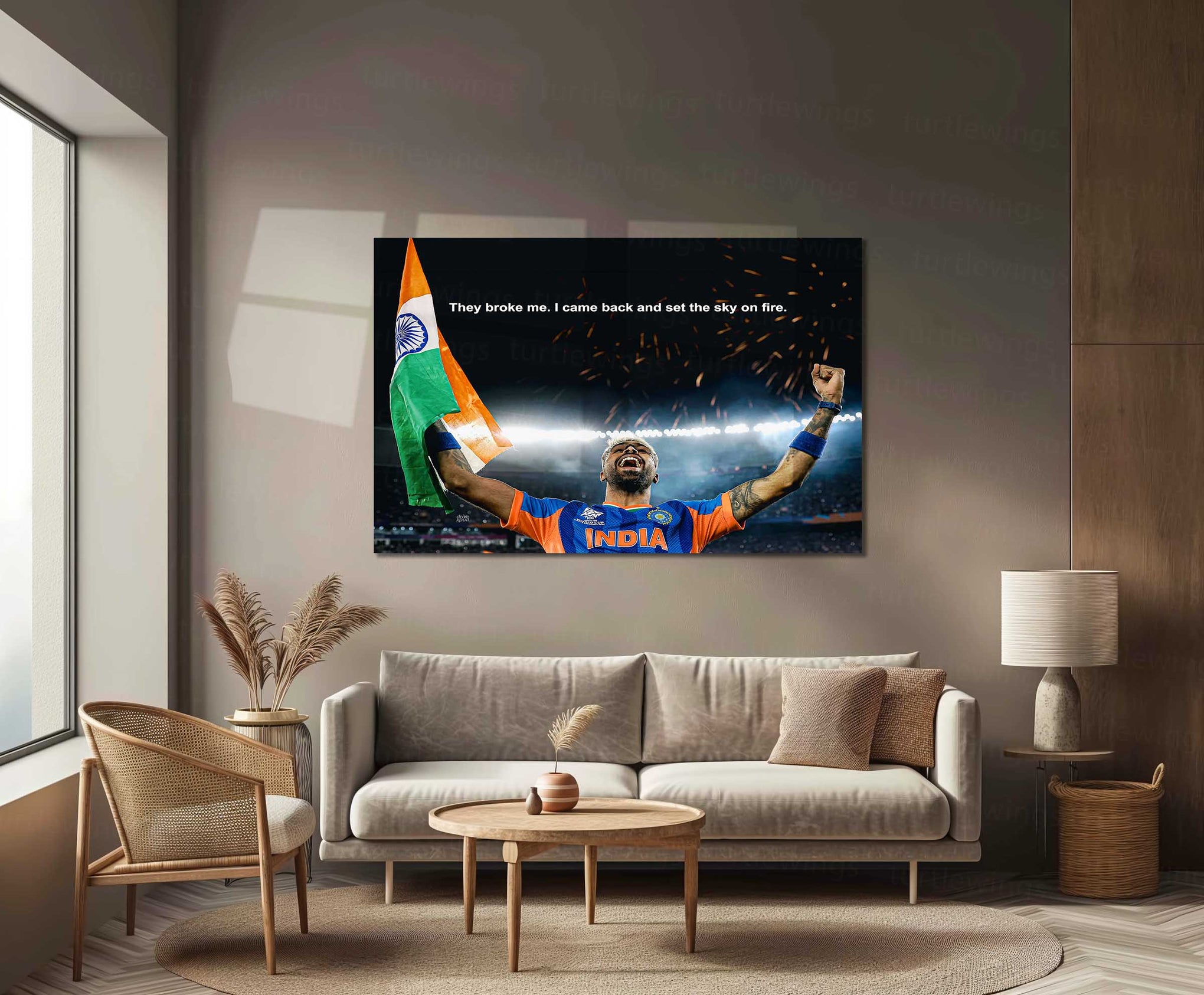 Perfect for cricket fans, sports rooms, gyms, gaming setups, and motivation walls, this piece represents resilience, comeback energy, and the spirit of Team India.