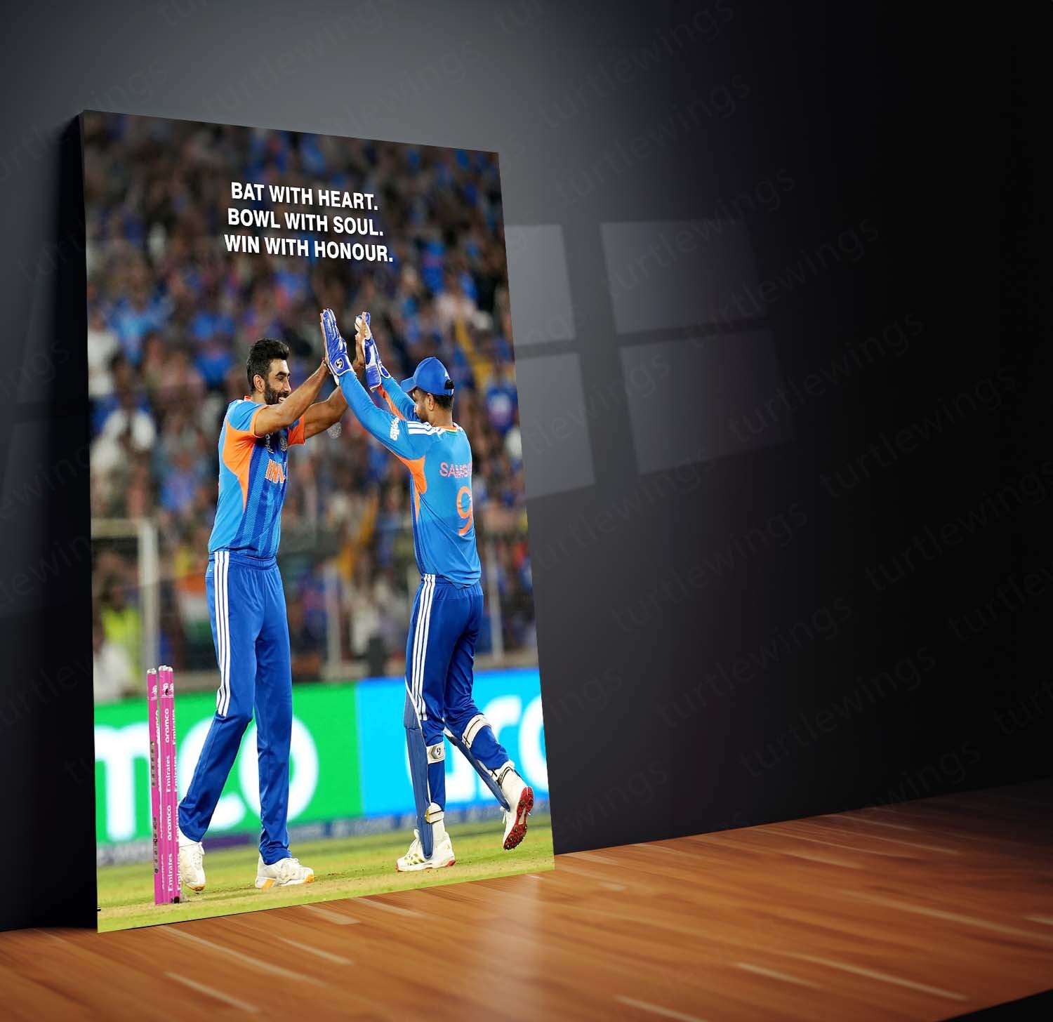 Cricket Metal Frame | Jasprit Bumrah & Sanju Samson – Bat With Heart, Bowl With Soul, Win With Honour | ICC Men's T20 World Cup 2026 Metal Frame