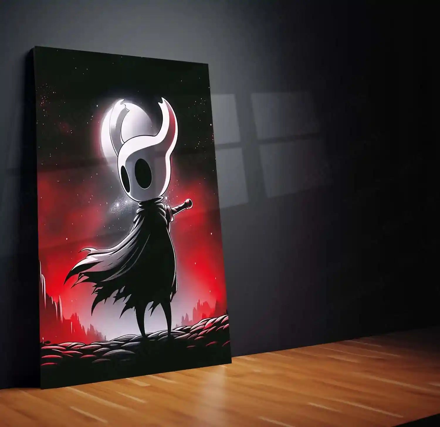 Hollow Knight – Silent Guardian captures the iconic lone warrior from the world of Hollow Knight — standing in silence with the soft glow of a dark, haunting atmosphere.