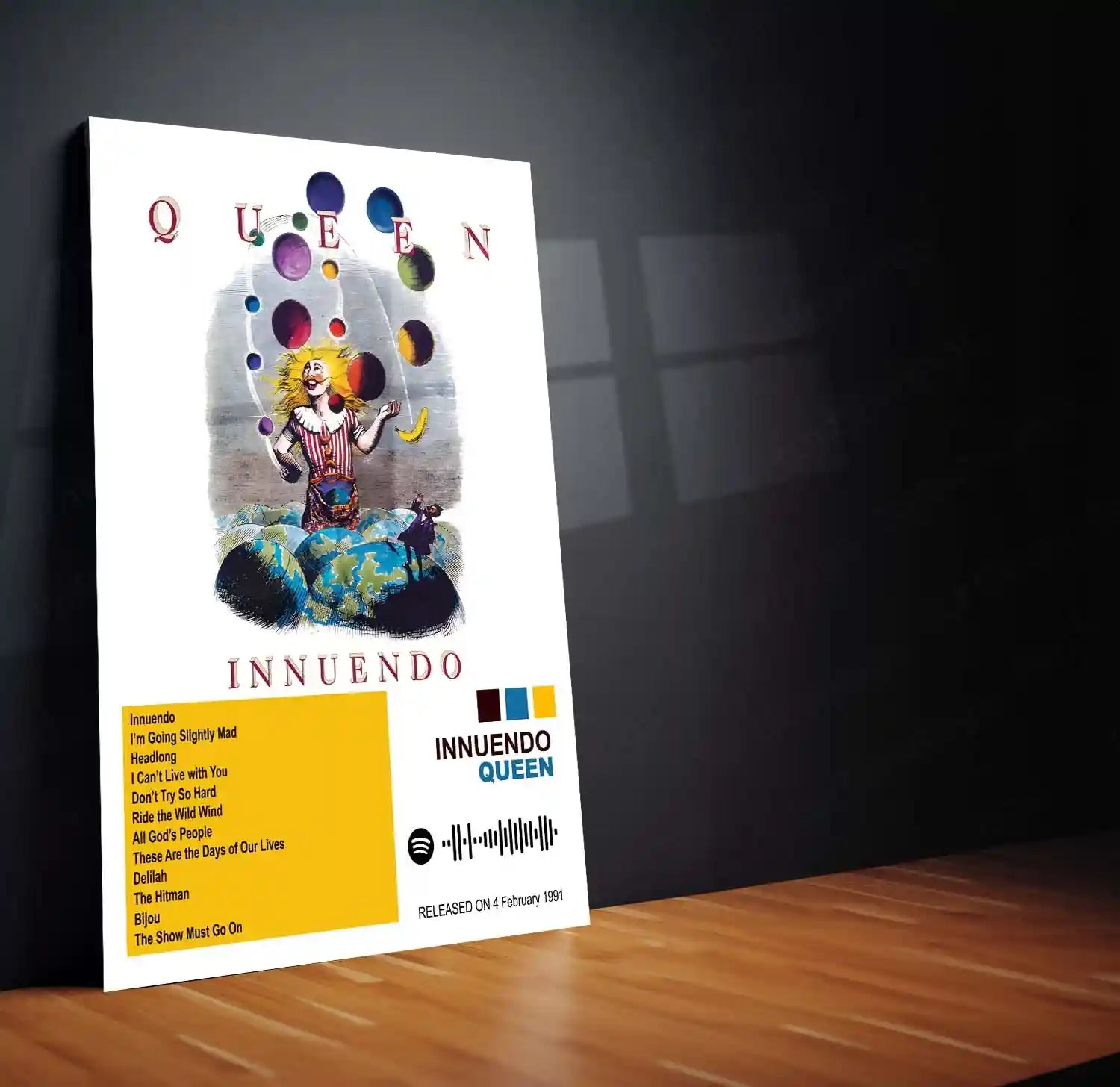From the operatic brilliance of Bohemian Rhapsody to the stadium power of We Will Rock You, this collection transforms any wall into a tribute to rock history.