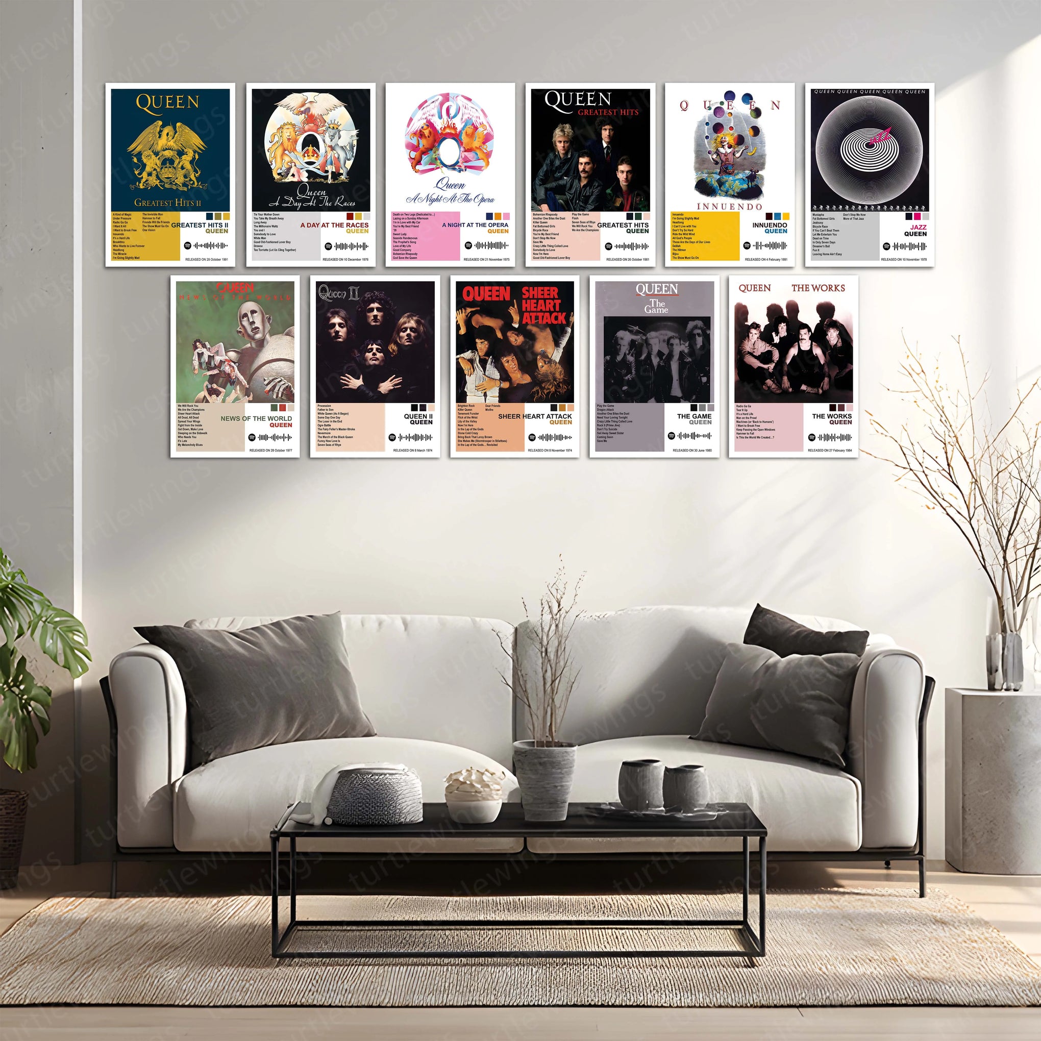Queen Complete Collection | Set of 11 | Set of 8 | Set of 4 | Album Posters Metal Frames Rock Royalty. Stadium Anthems. Timeless Legends. - TURTLEWINGS