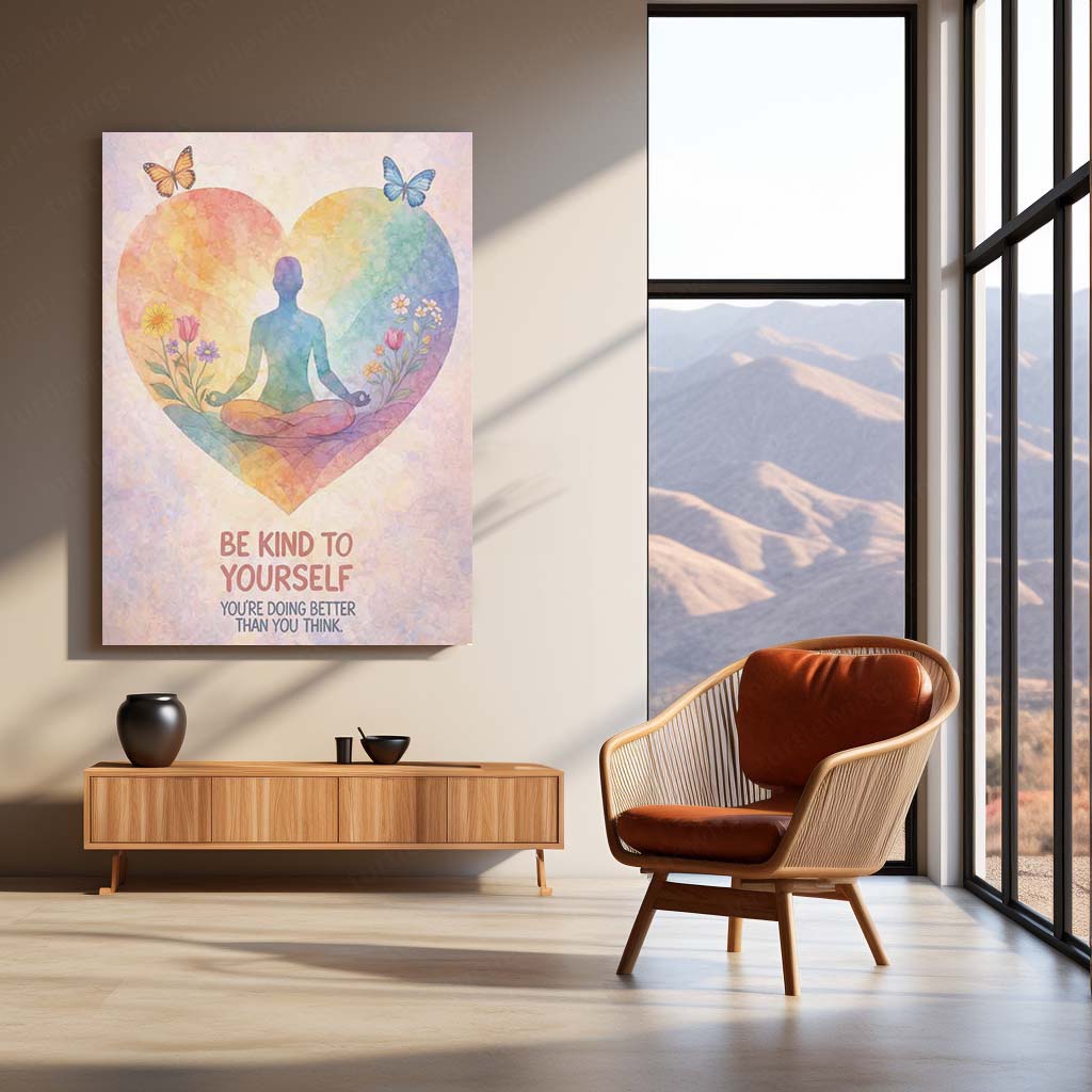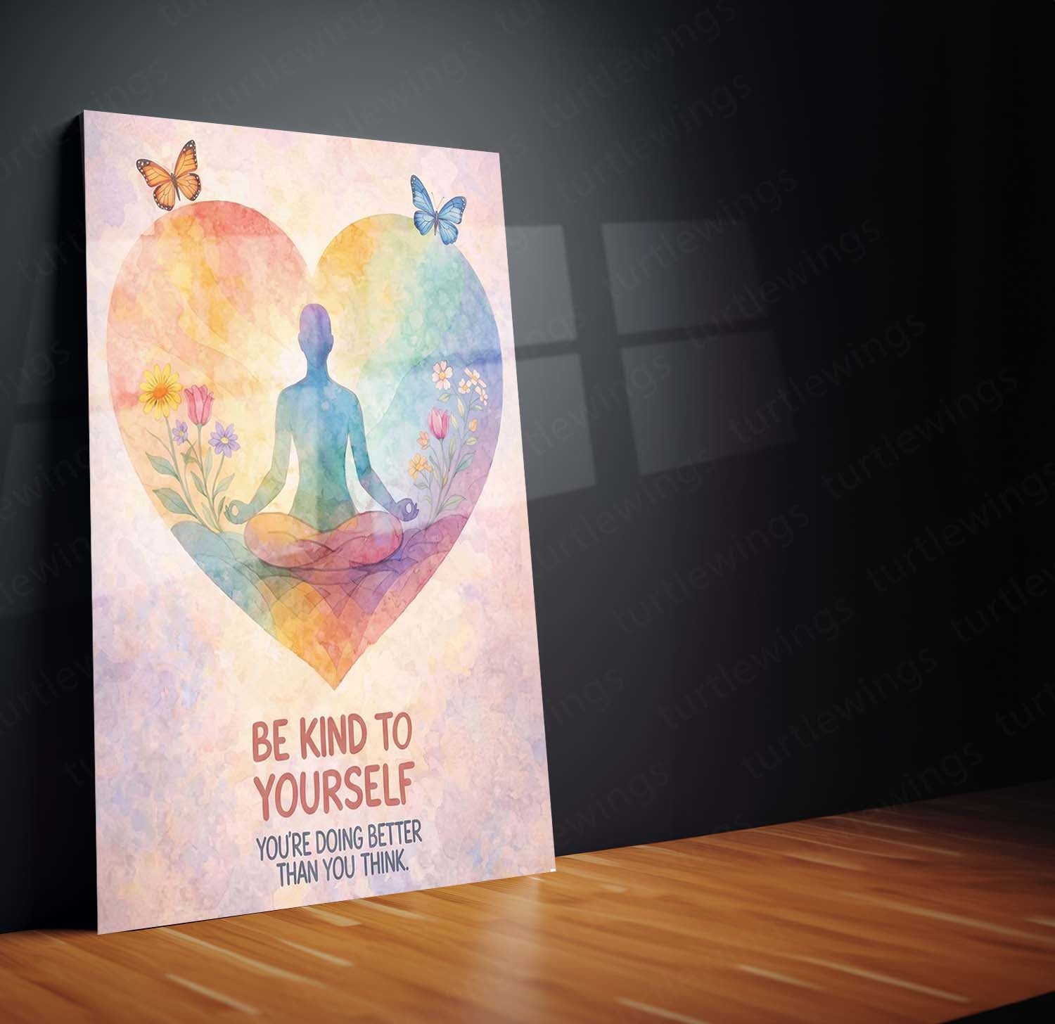 Be Kind to Yourself is a calming and uplifting artwork that encourages self-compassion, mindfulness, and inner peace.